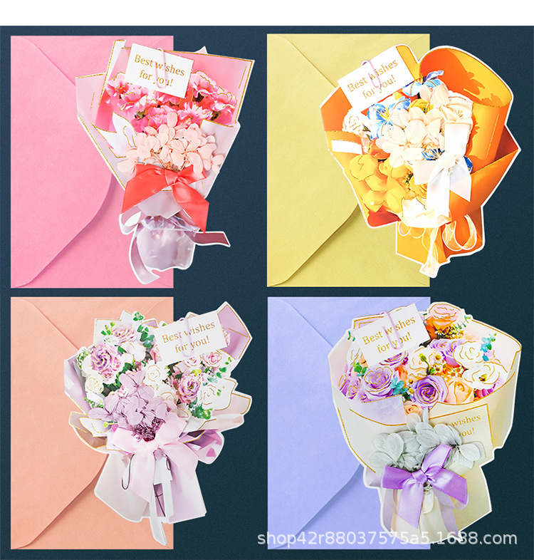 小さな二つ折りグリーティングカード花の名で立体カード立体花束祝福カード学生プレゼントメッセージカードクリエイティブカード