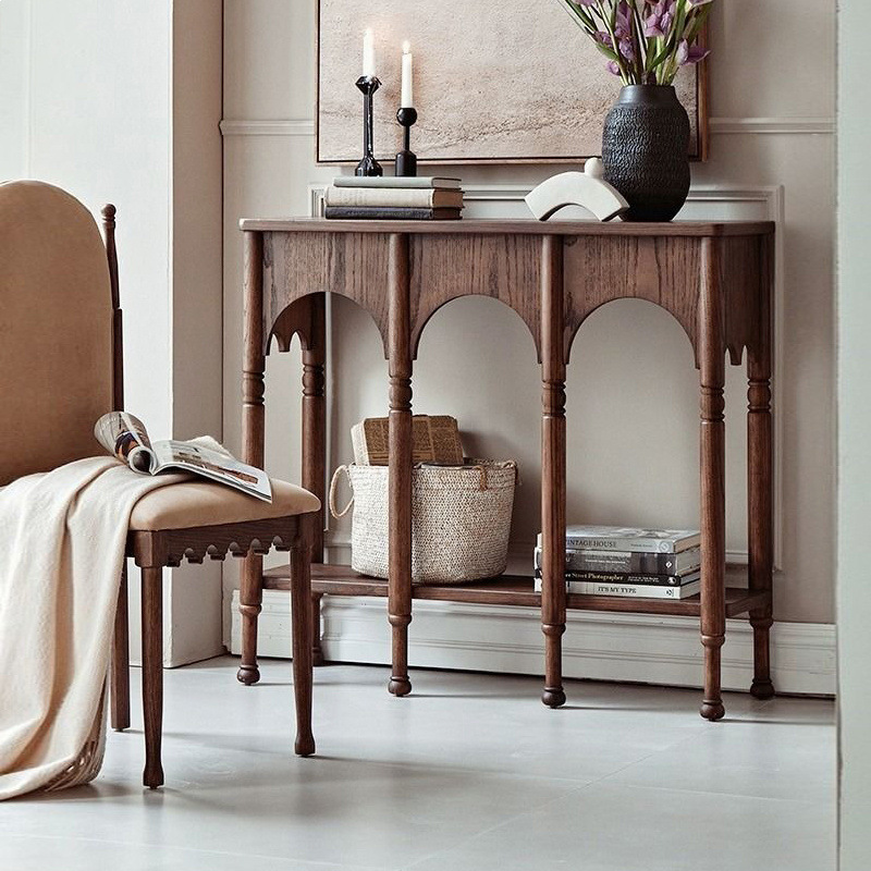 無垢材のレトロなコンソールテーブル、リビングルームの通路の収納ラック、サイドテーブル、玄関ドアテーブル、ハイテーブル