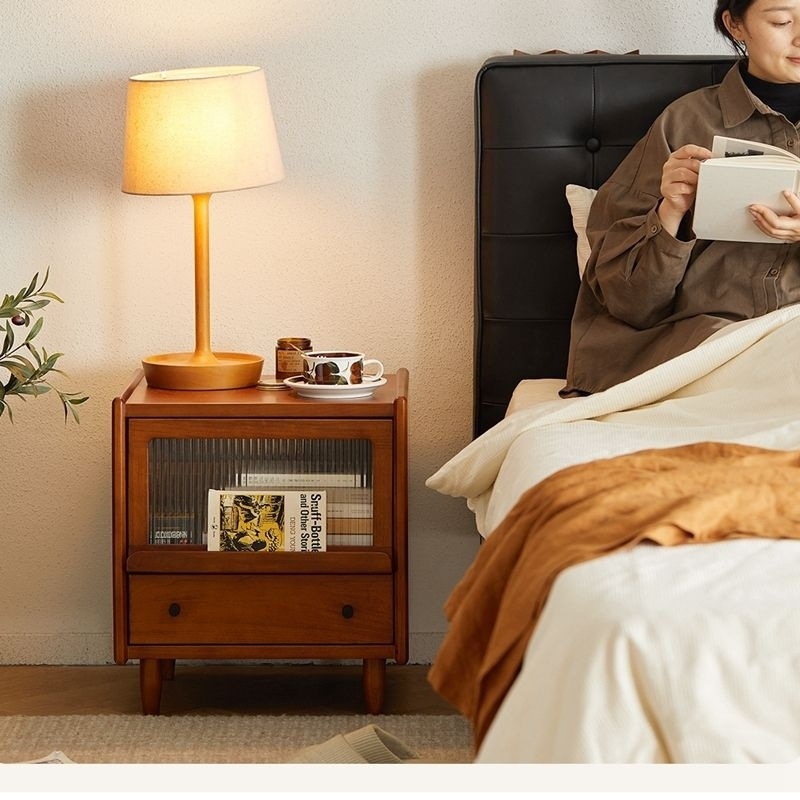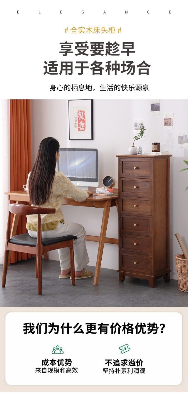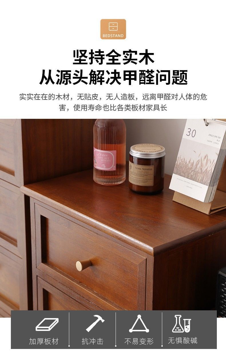 レトロな無垢材のベッドサイドキャビネット寝室のシンプルな収納キャビネット家庭用小型超狭い収納キャビネット収納ベッドサイドの小さなキャビネット
