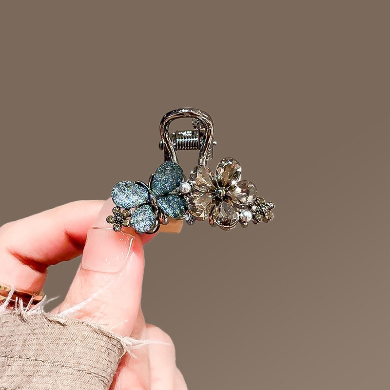 轻奢韩国水钻花朵抓夹高级感精致后脑勺半扎发夹时尚合金鲨鱼夹女
