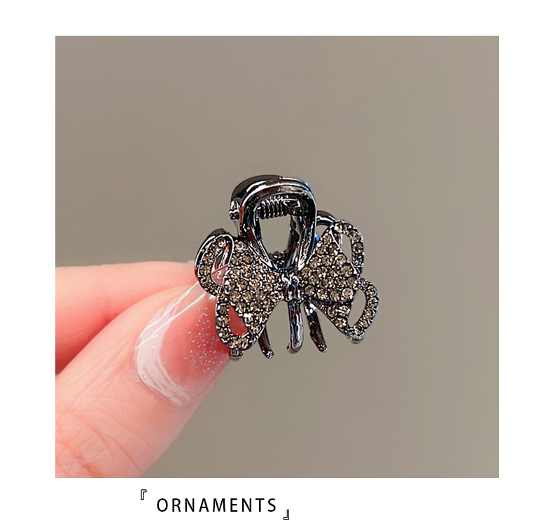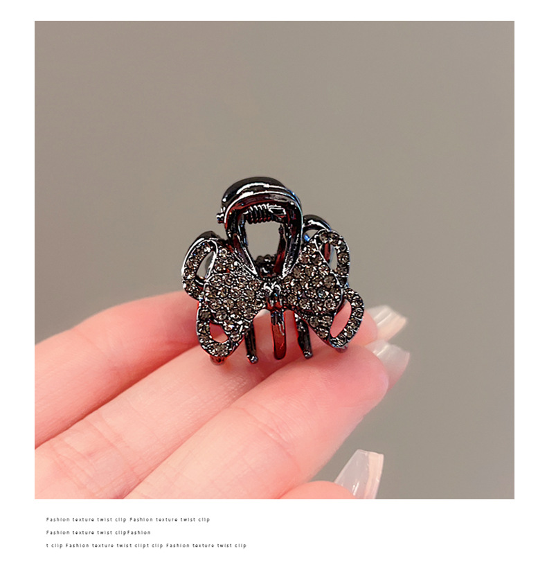 水晶蝴蝶结小号抓夹新款韩版气质黑色发抓合金发卡前额碎发刘海夹
