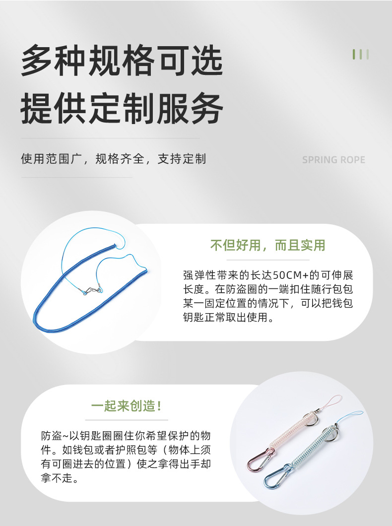 スプリングロープ安全警告ロープ携帯電話ストラップおもちゃ電話ケーブルスプリングスパイラルプラスチックサンプルキーホルダー