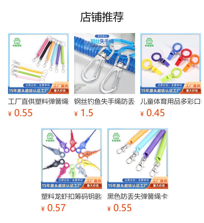 スプリングロープメーカーは、EVAプラスチック製の伸縮式紛失防止ストラップ、キーチェーン、カードホルダー、装飾アクセサリー、キーホルダーを供給しています。