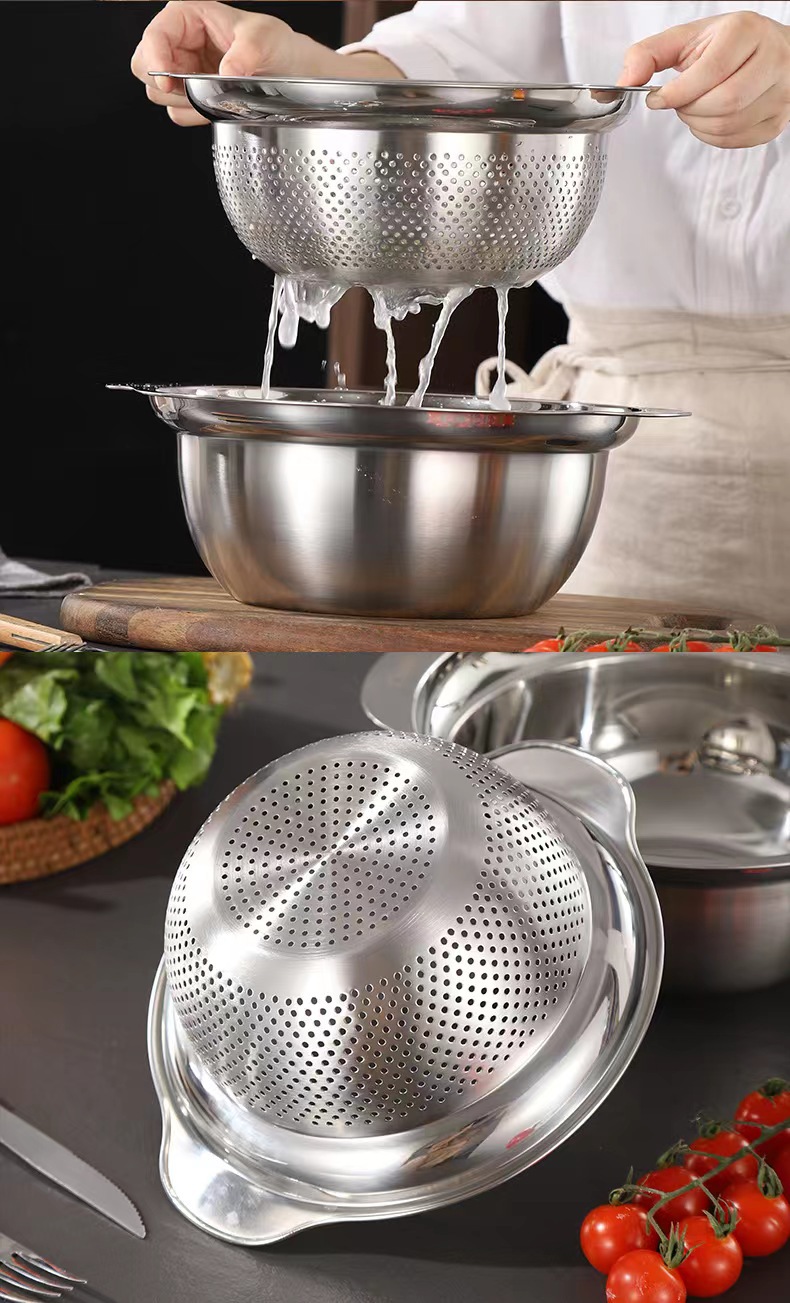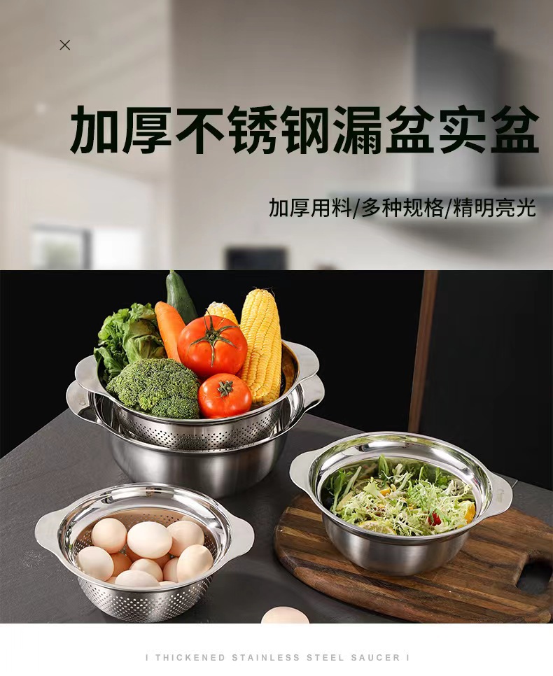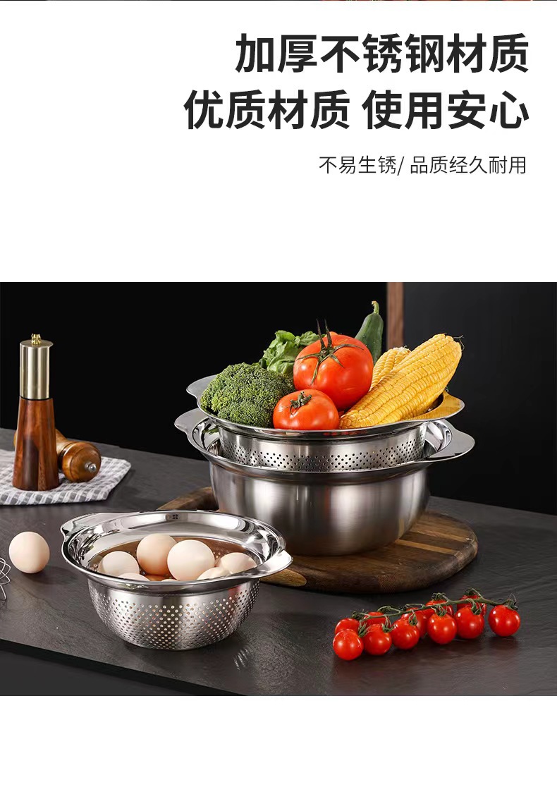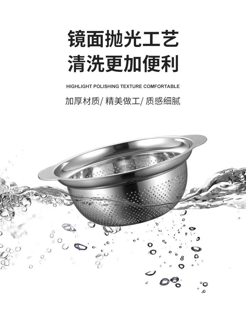 沥水盆304不锈钢套装加厚食品级家用厨房洗菜洗米打蛋面盆水果篮
