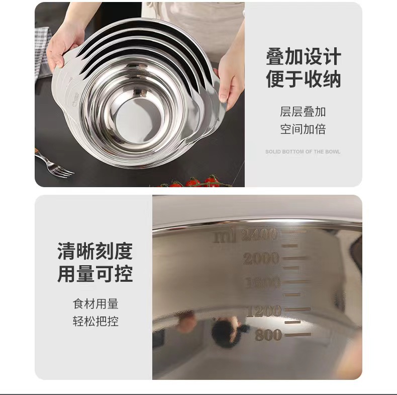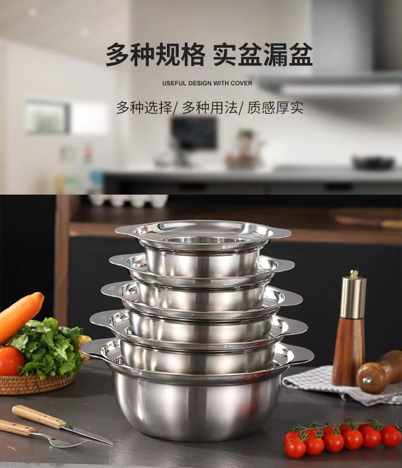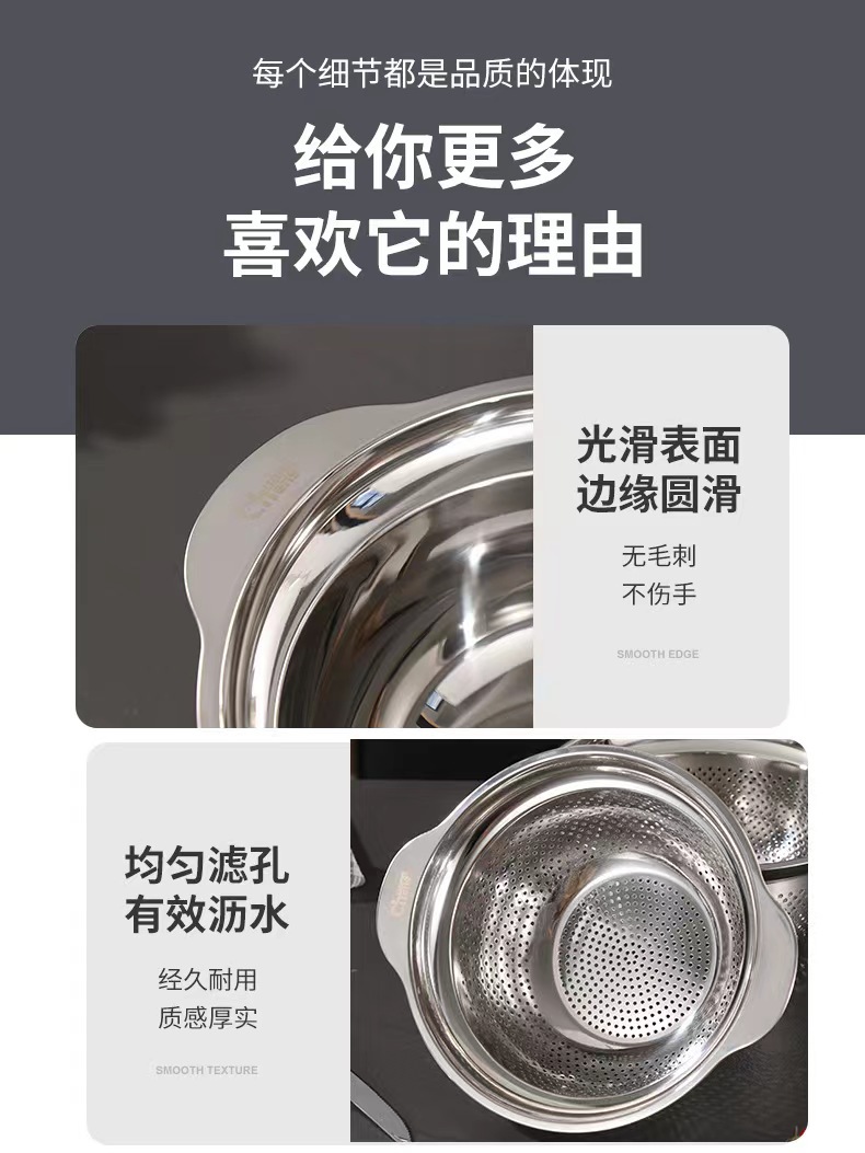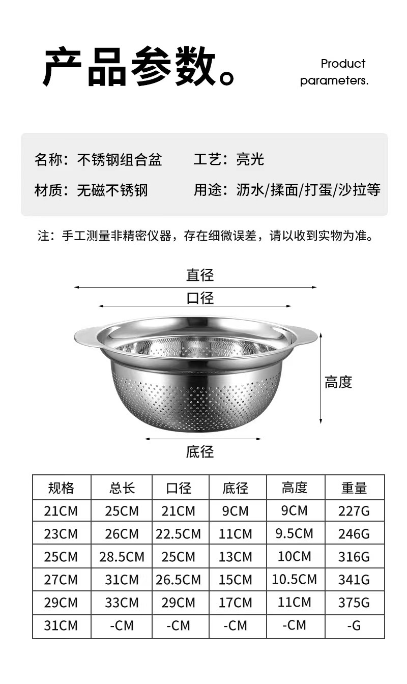 沥水盆304不锈钢套装加厚食品级家用厨房洗菜洗米打蛋面盆水果篮