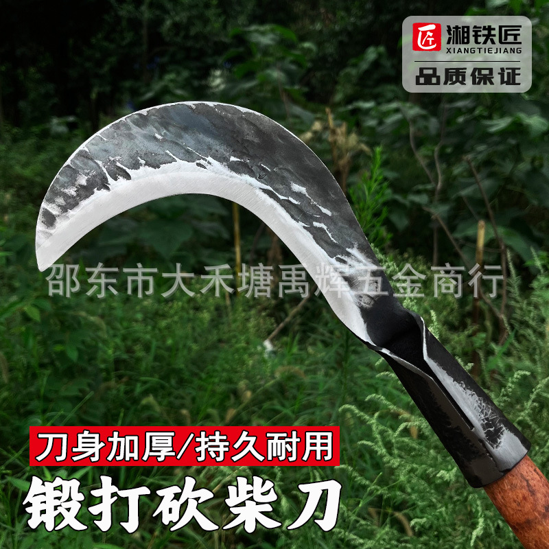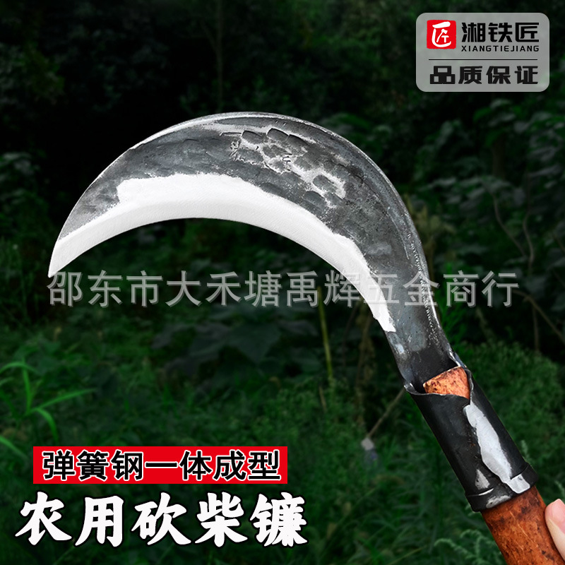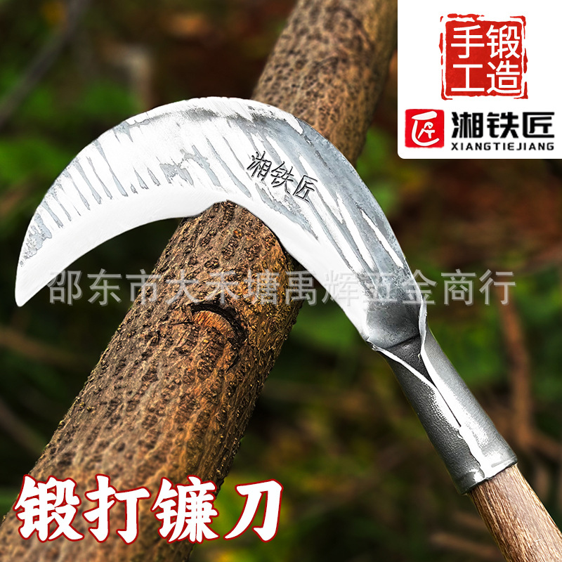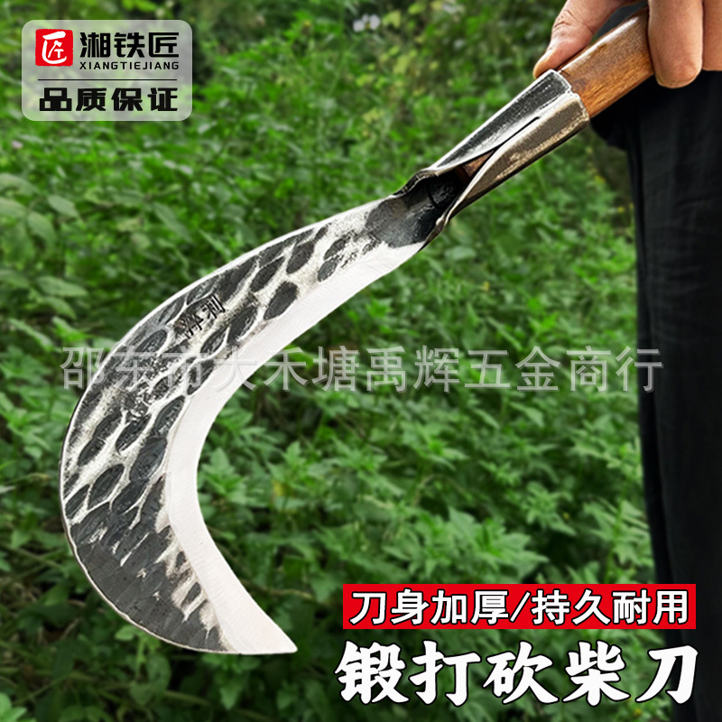 湘铁匠高锰钢锻打镰刀砍割两用农用砍柴刀户外割玉米割草农村柴刀