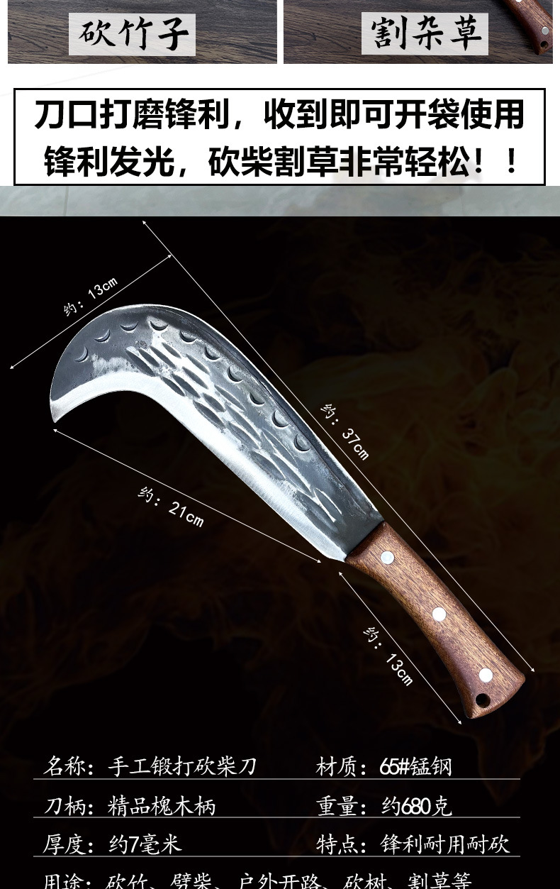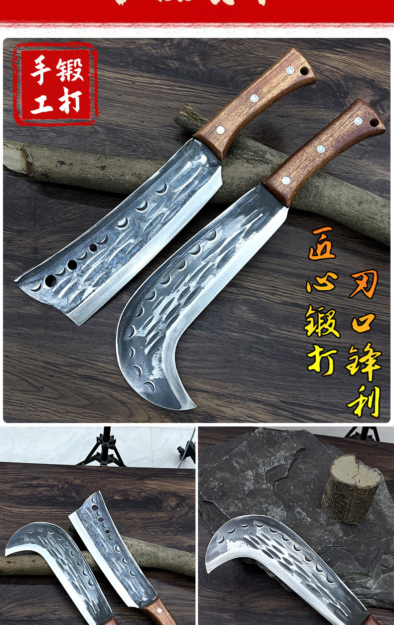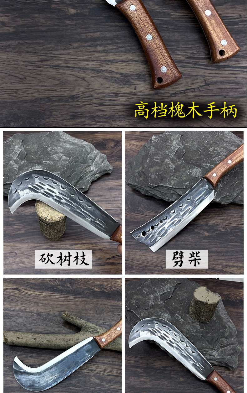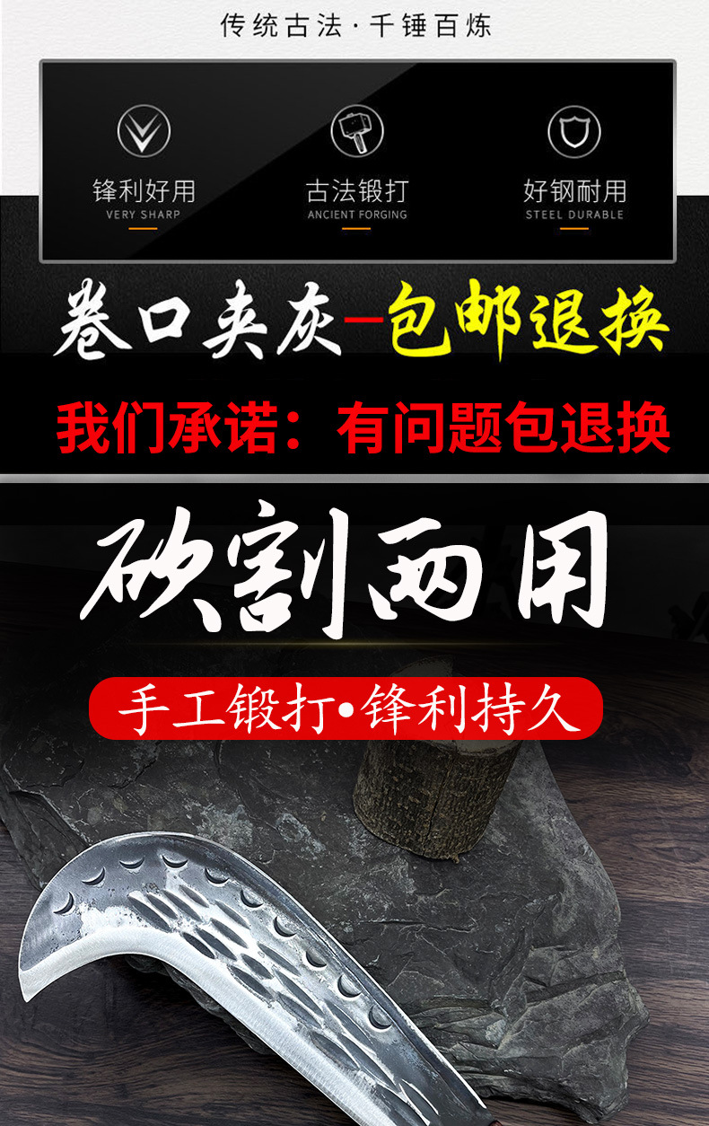 代发锤纹锻打锰钢柴刀割玉米秆割草刀砍枝除草弯刀砍割两用柴刀柴