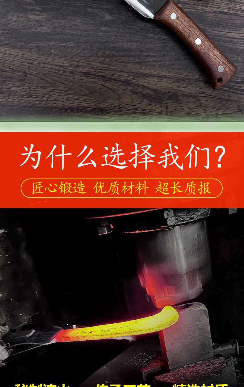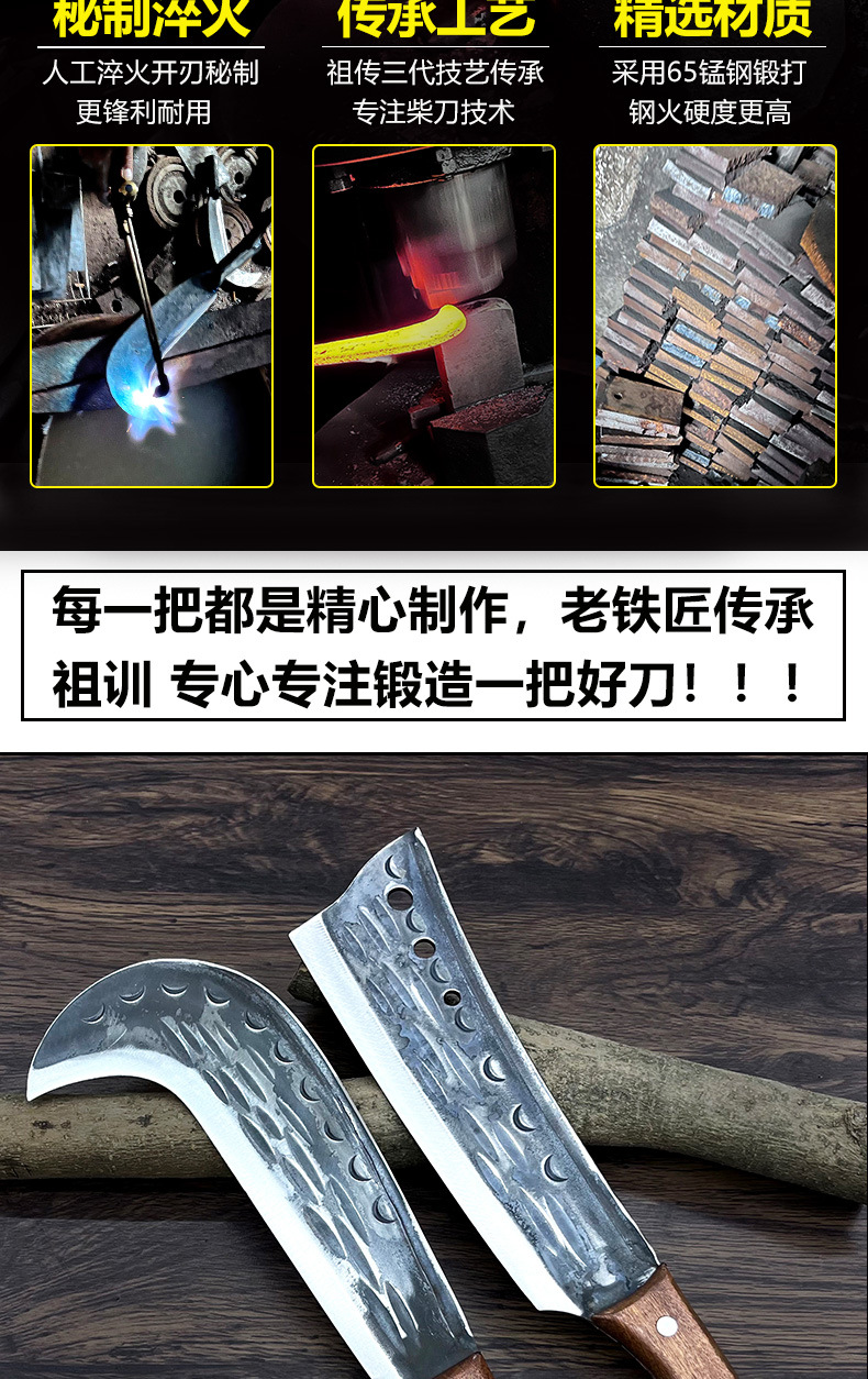湘铁匠手工锻打砍柴刀户外砍树刀农用劈柴割草刀砍割两用柴刀勾刀