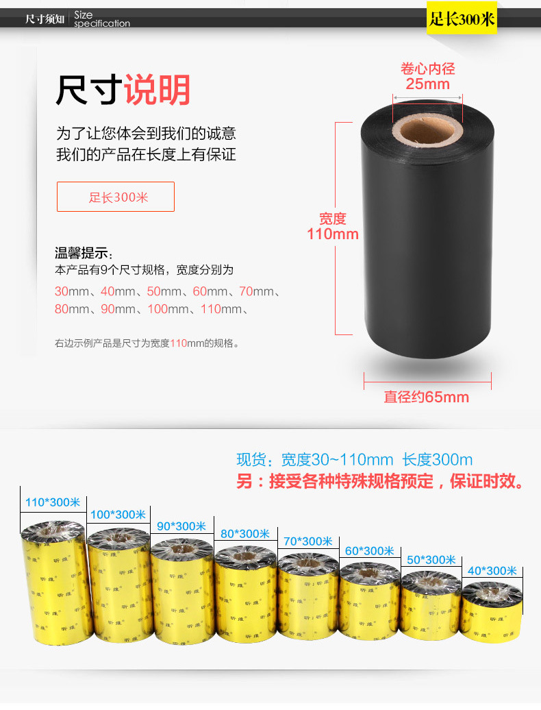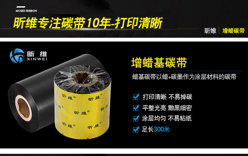 水洗标碳带300mm宽耐高温耐水洗不掉色热转印水洗蜡基碳带色带