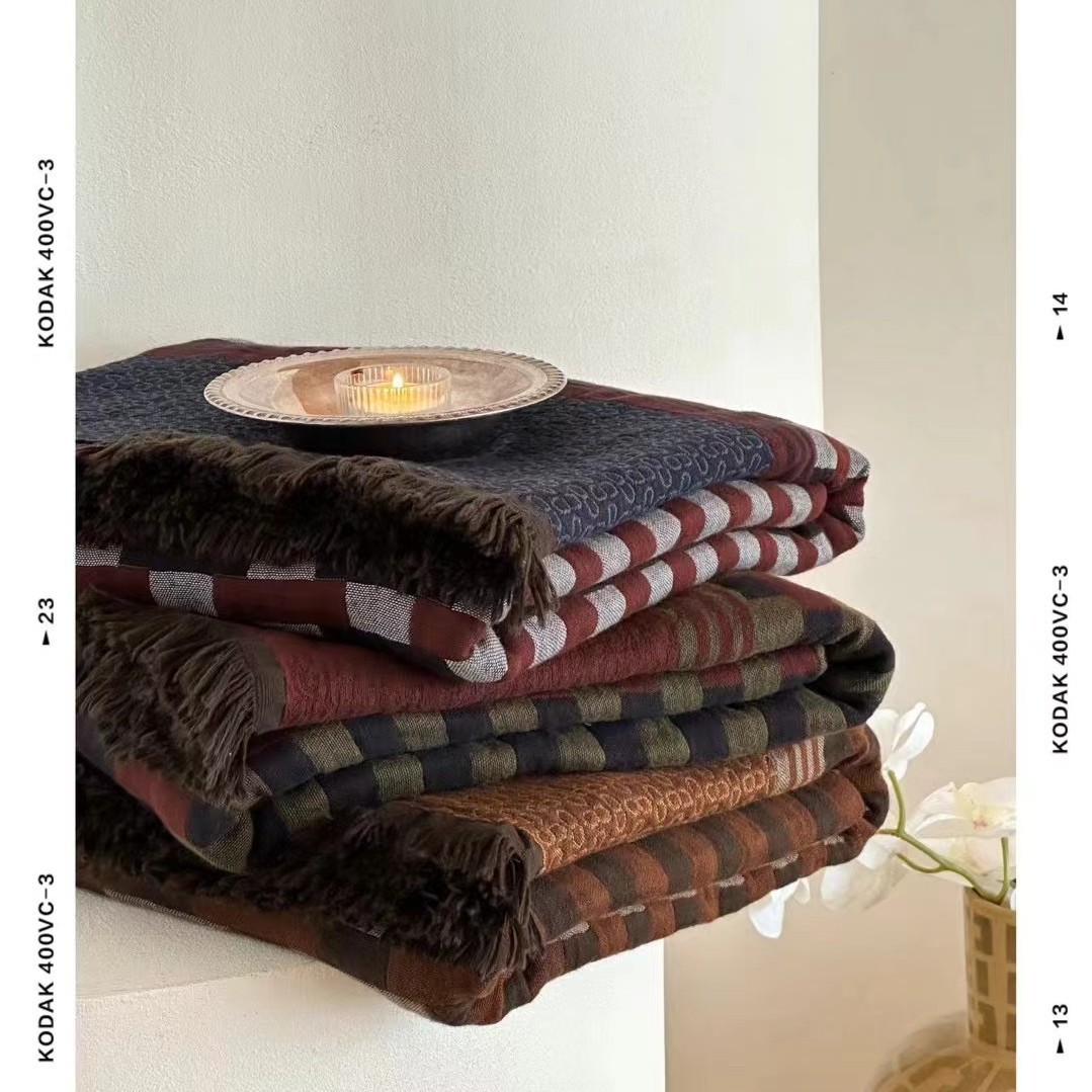レトロ高級綿ガーゼフリンジブランケットオフィス昼寝ブランケットソファーブランケットエアコンブランケット