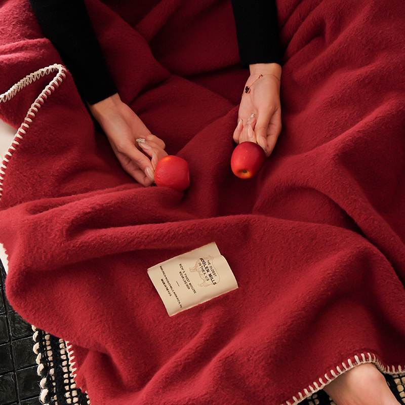 アンコラ赤模造ウール絨毯シングル二人ソファー毛布保温オフィス昼寝エアコン毛布