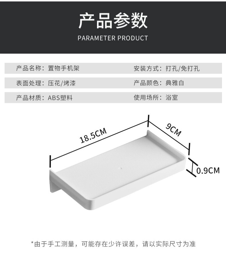 穴を開けないトイレのプラスチック携帯電話ホルダートイレトレープラスチック浴室棚壁仕切り板ベッド棚