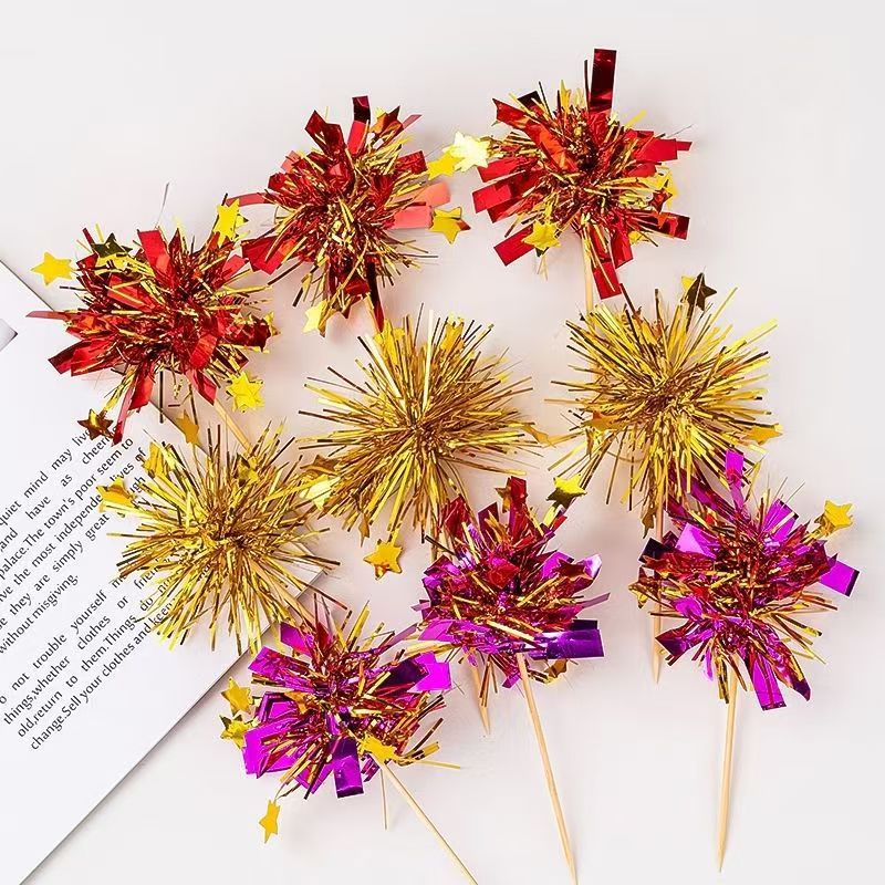 クロスボーダーアルミ箔花火紙コップケーキ装飾赤金属糸ケーキ装飾用品