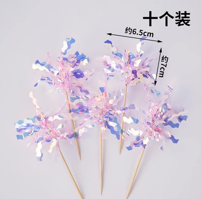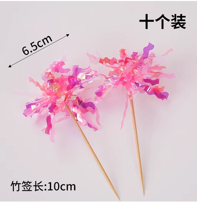 小紅書ins風自慢のスパンコール流蘇雨糸礼花誕生日ケーキ装飾カードプラグイン10匹