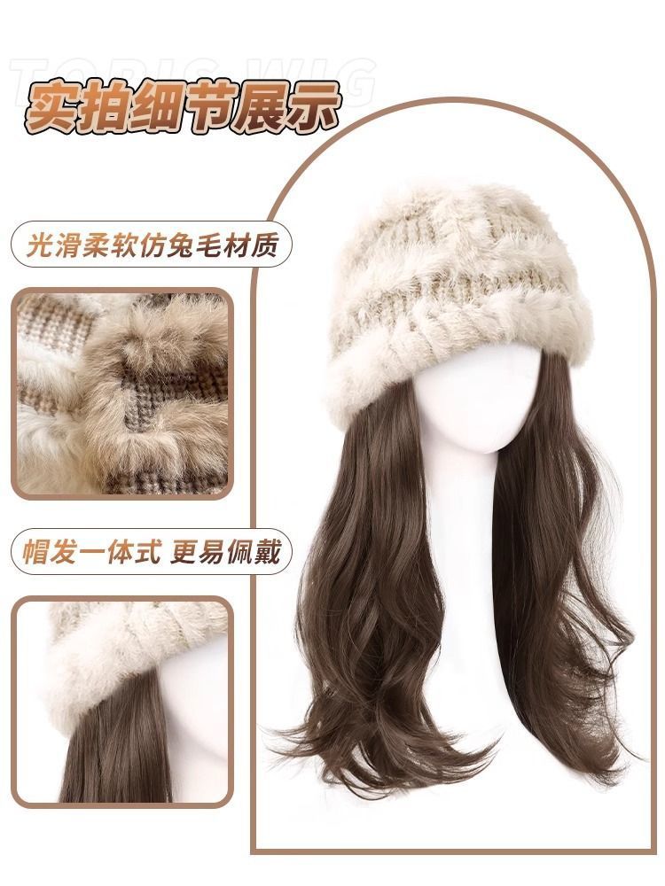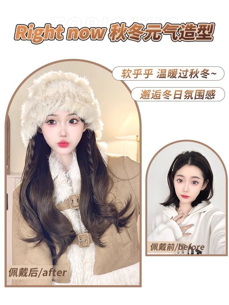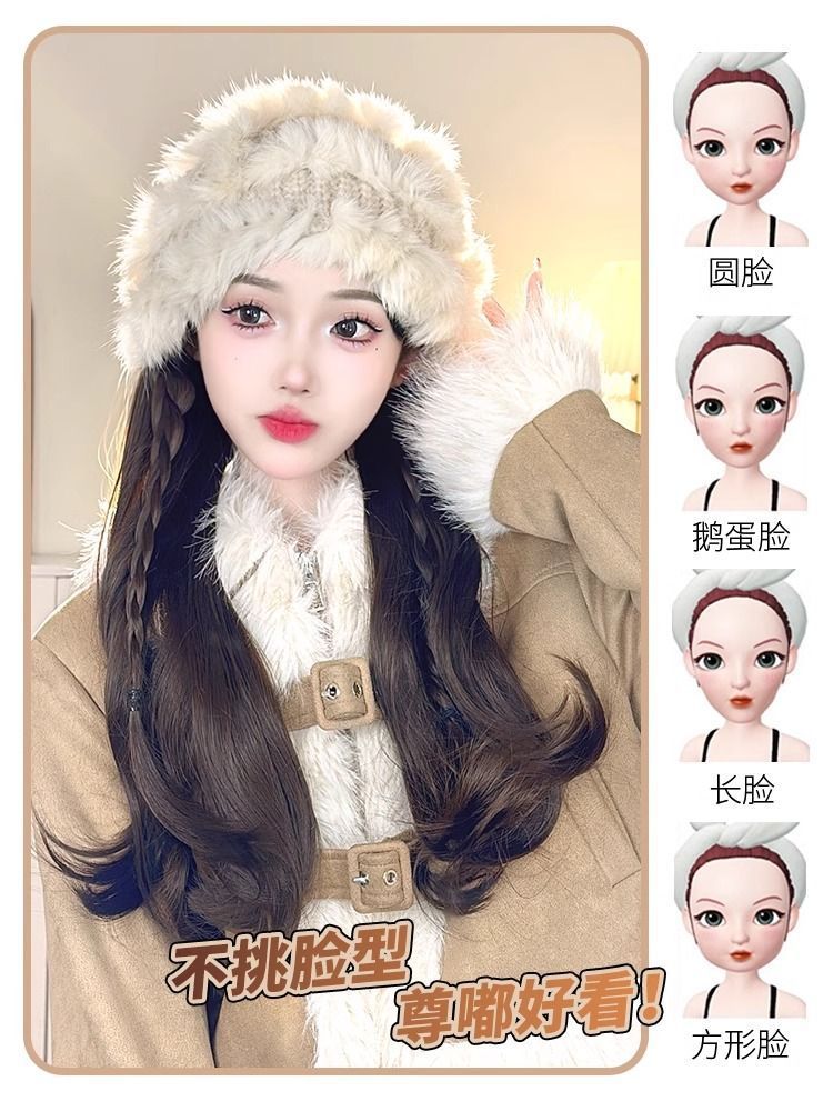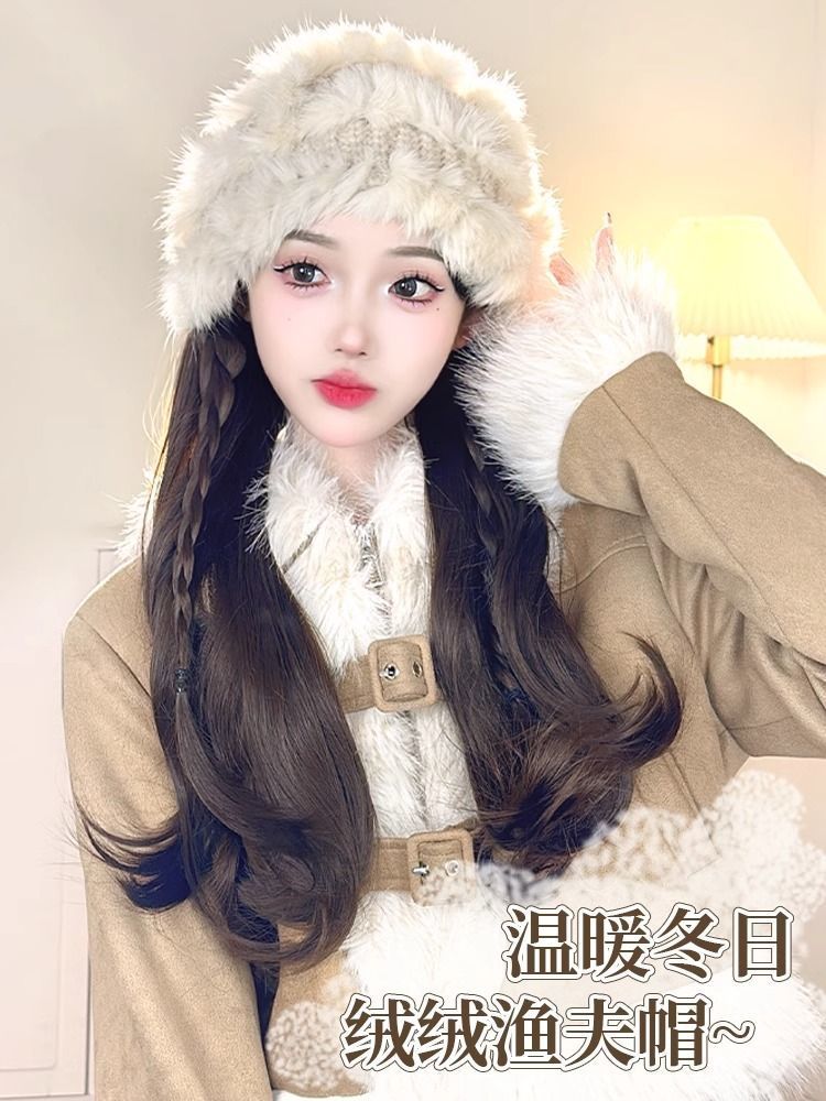 帽子假发一体女长发2025年新款秋冬季毛绒帽仿真发长卷发全头套式