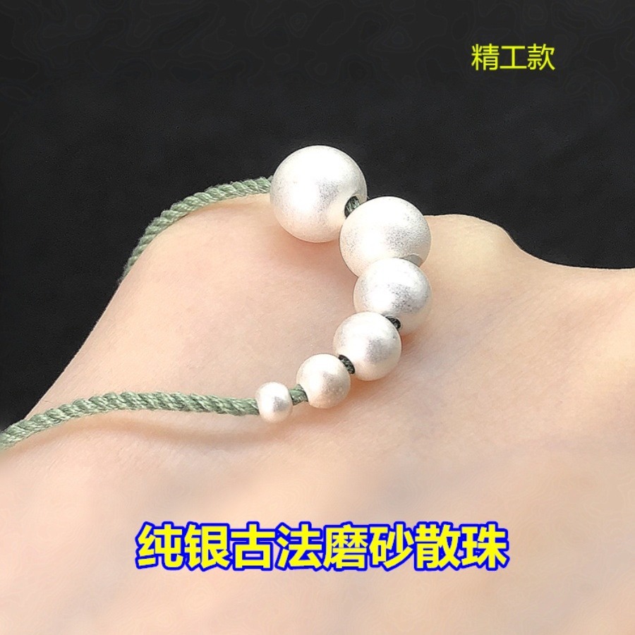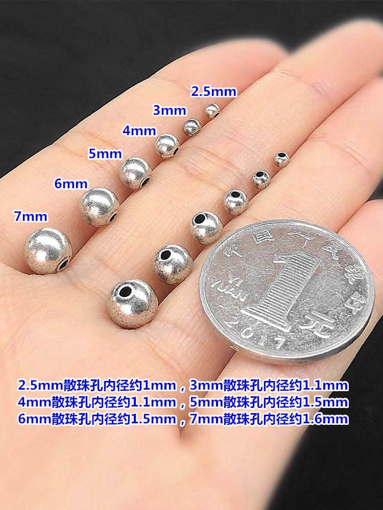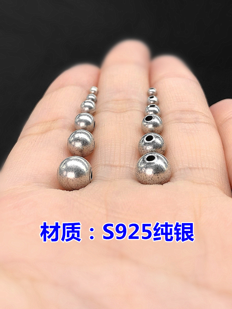 s925纯银复古散珠古法圆珠隔珠编织手绳串手链项链手工diy配件