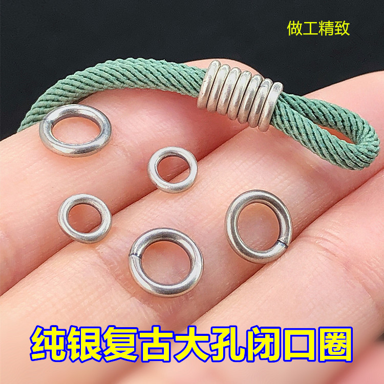 S925純銀レトロ大穴閉口リングスペーサーコイル編み手縄チェーンネックレス手作りdiyアクセサリー