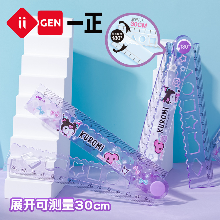Iigen一正文房具サンリオイメージ多機能折りたたみ定規小学生描画ツールスケールストレート定規