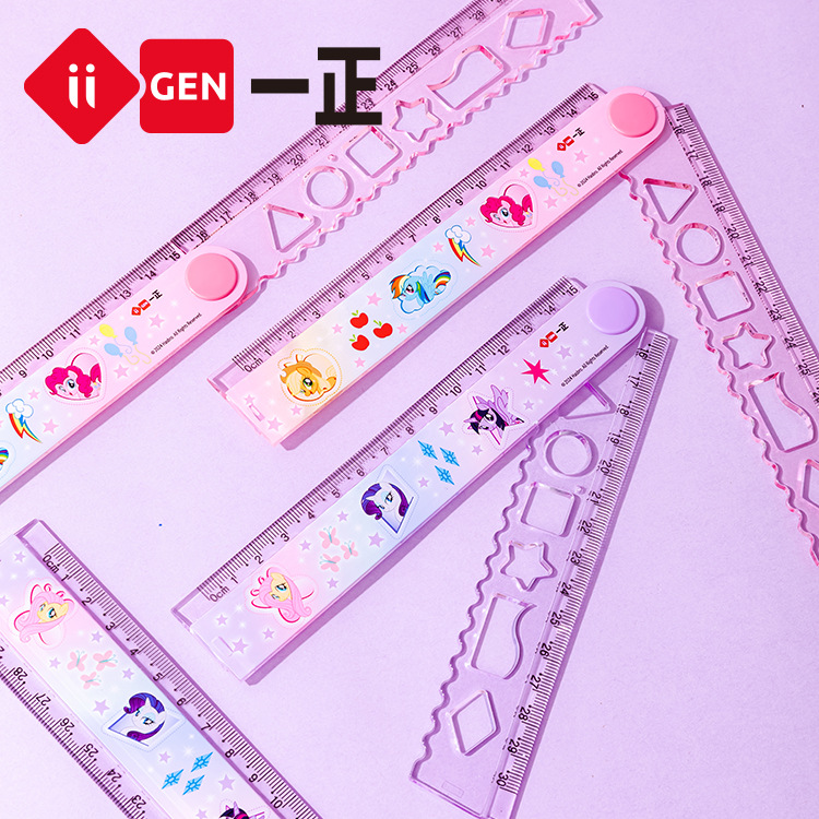 Iigen一正文房具ポニーポーリーイメージ多機能折りたたみ定規ストレートカラーかわいい学生定規