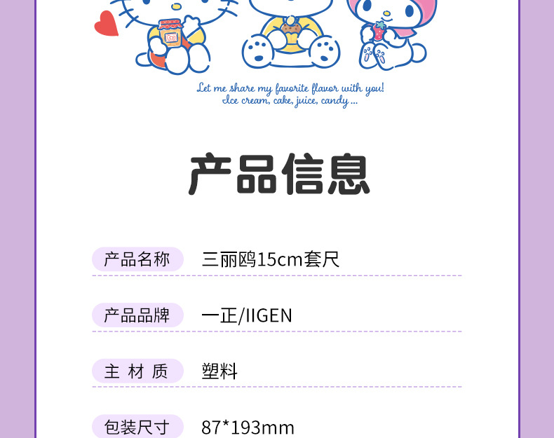 Iigen一正文房具サンリオイメージ15cm定規アニメかわいい物差し小学生試験セット
