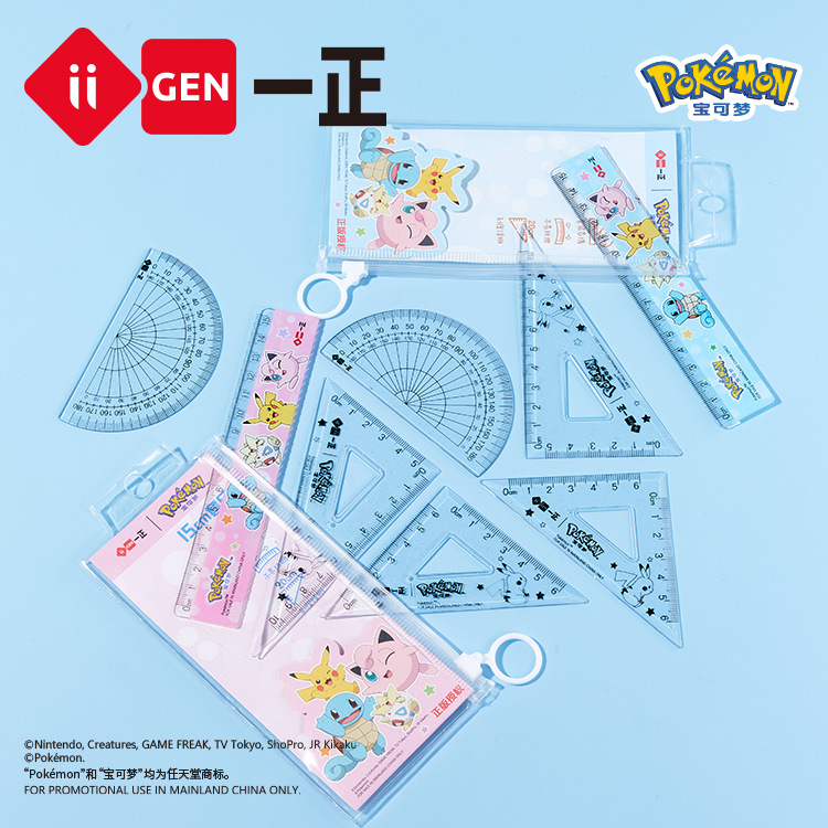 iigen一正文具宝可梦形象15CM套尺小学生专用直尺三角尺量角器