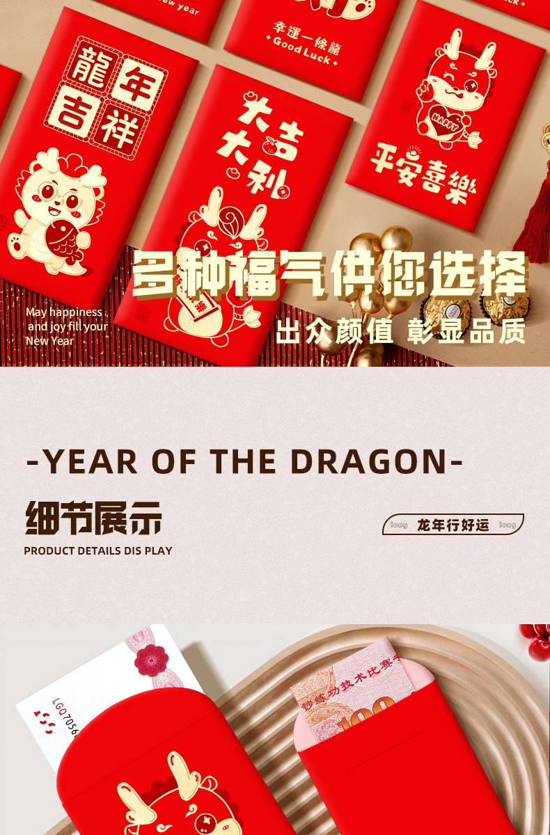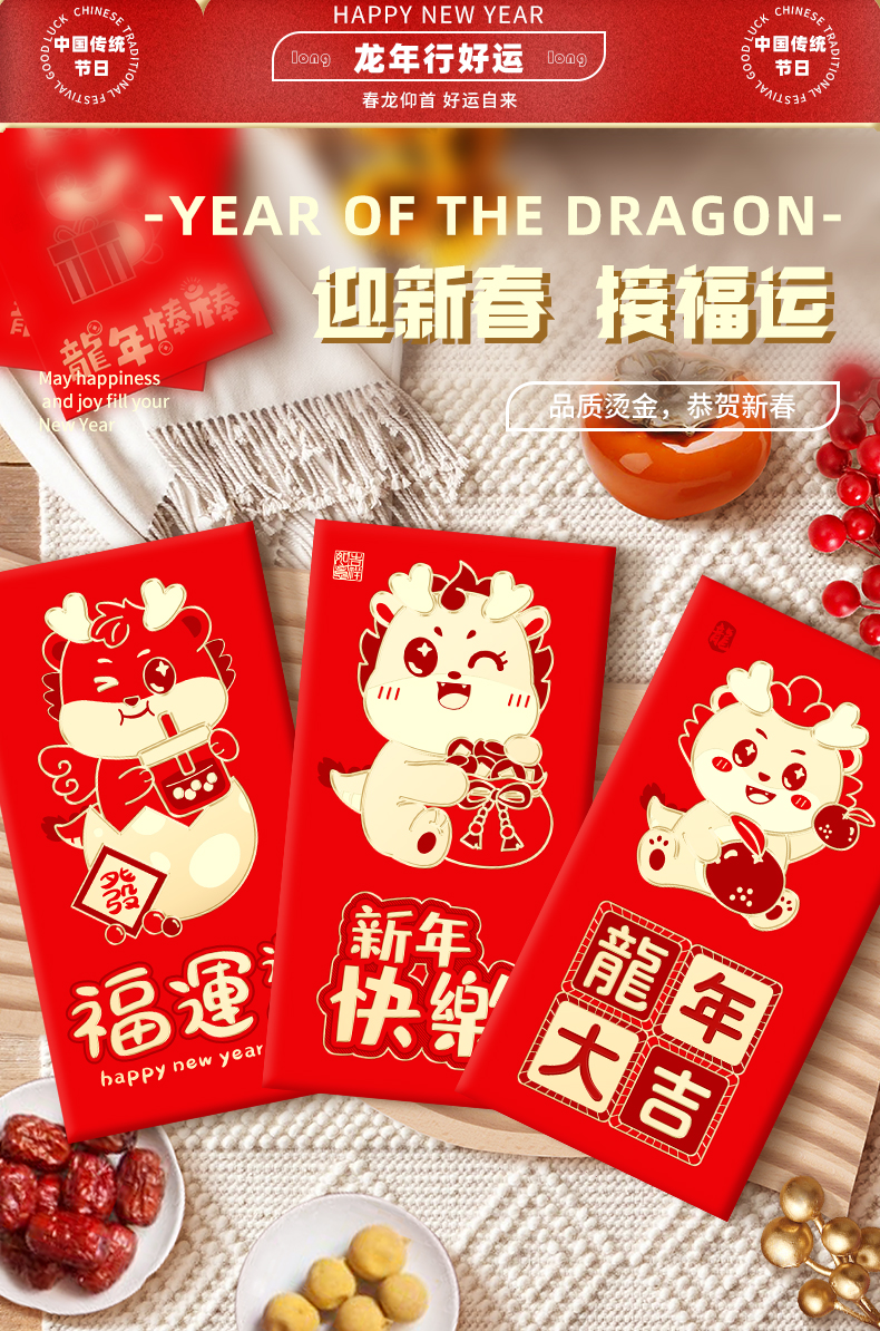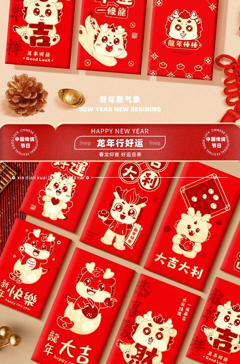2024龍年紅包袋中国式厚手箔押し生肖カード通龍利は旧正月の加歳紅包を封じたものである