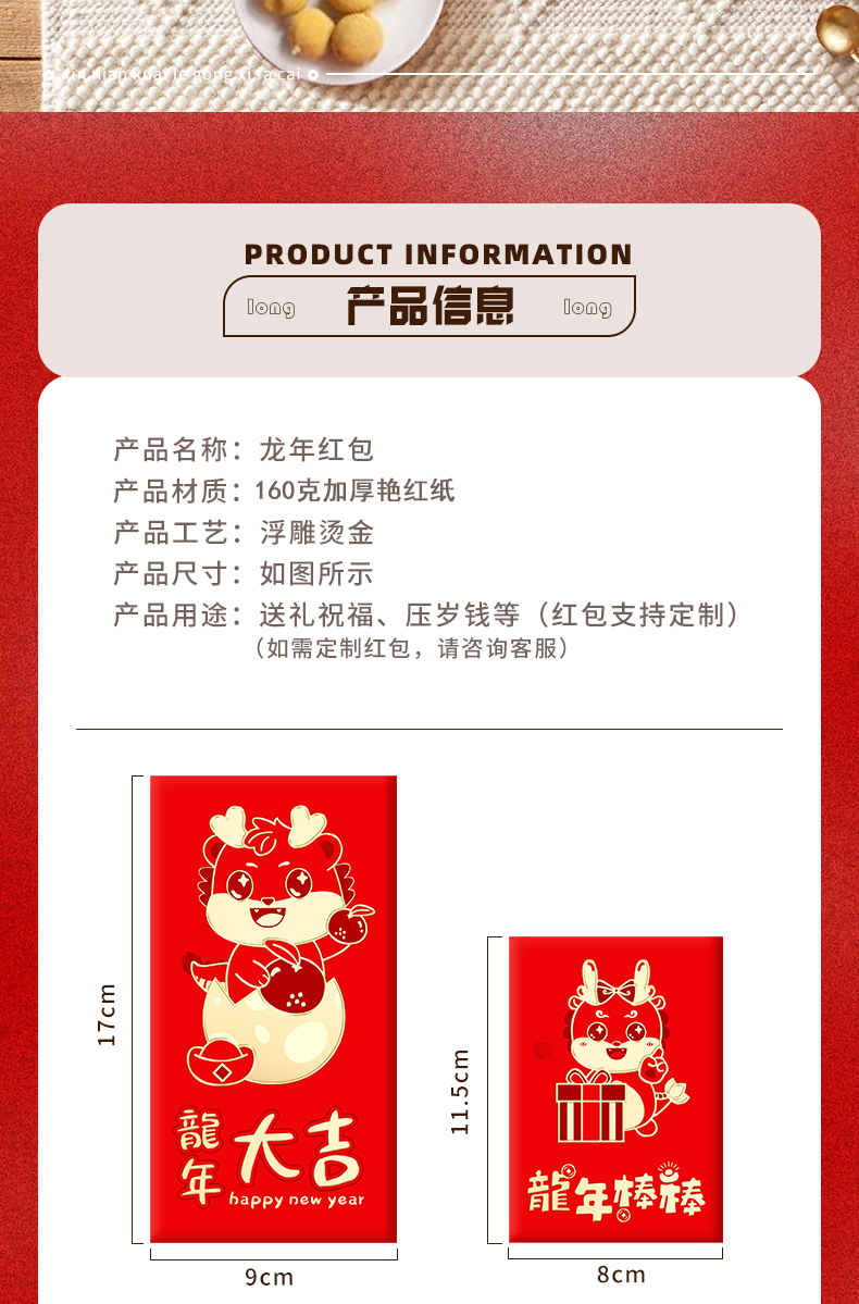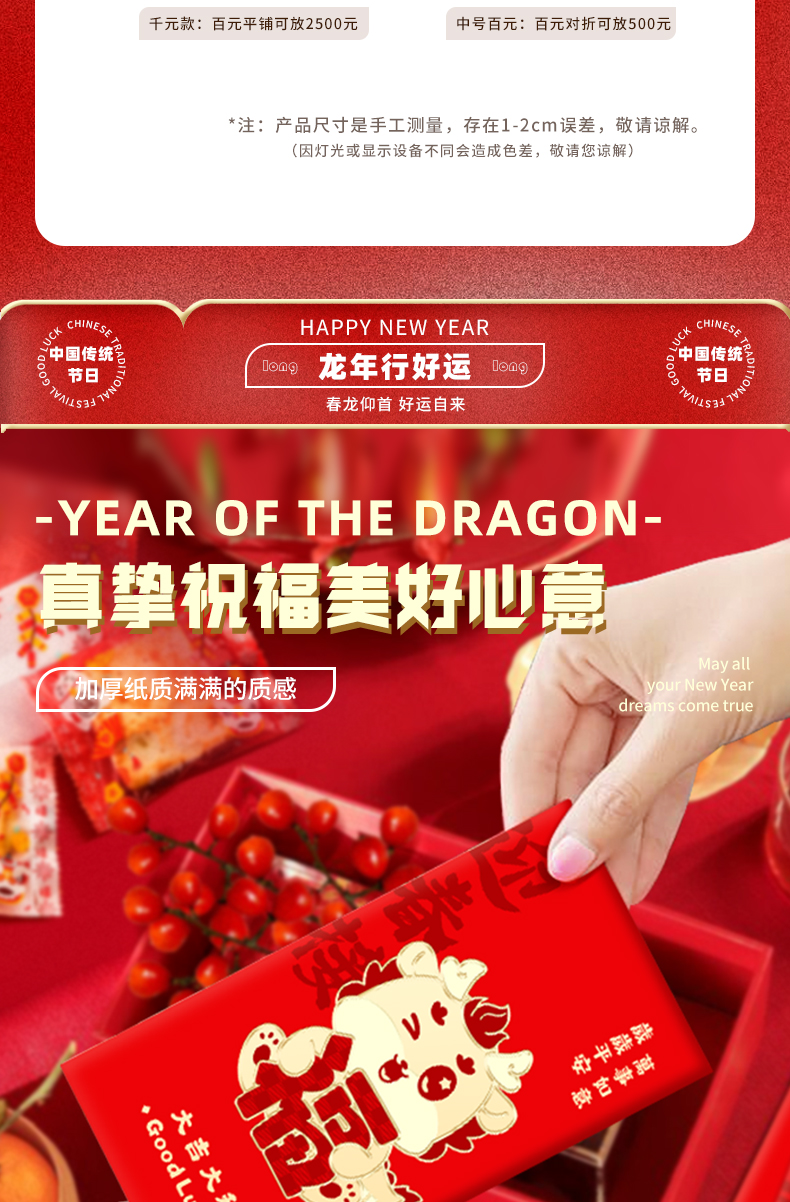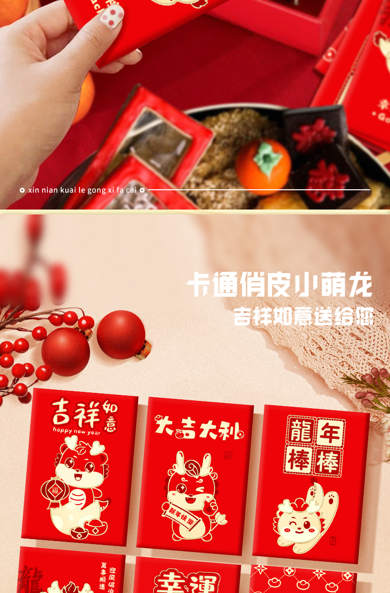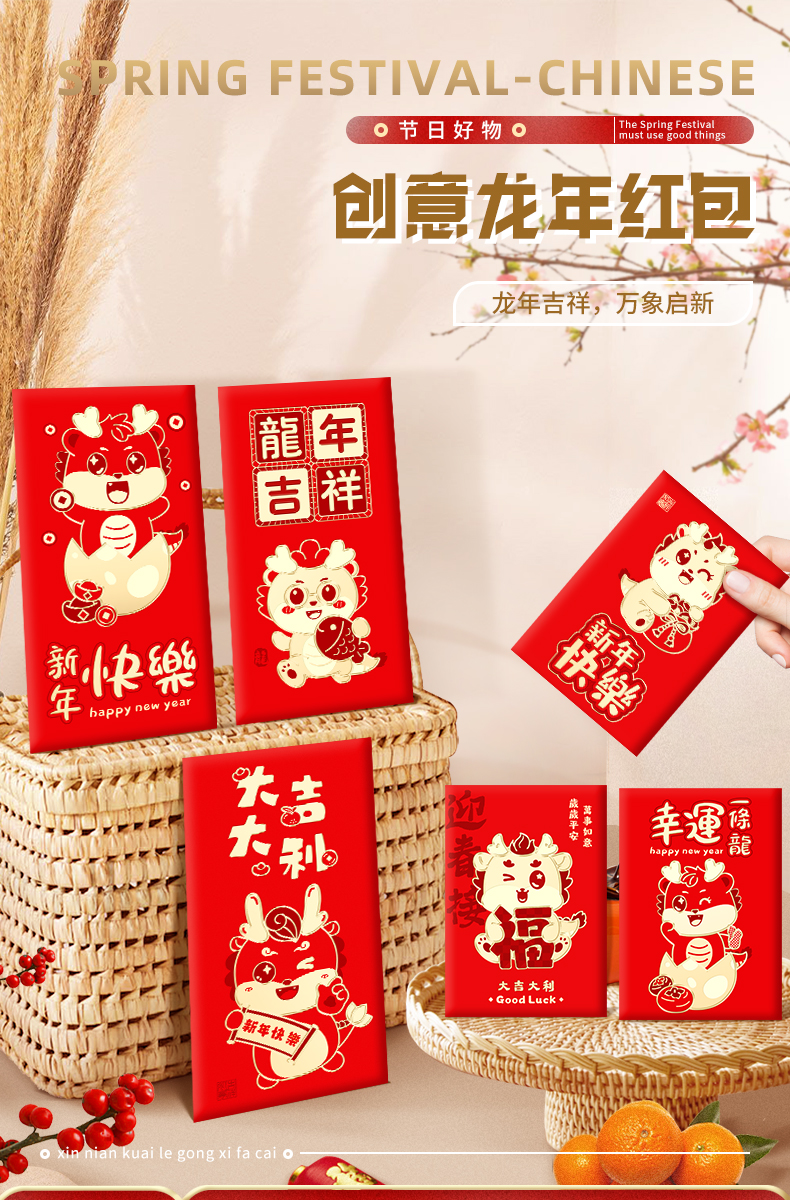 2024龍年紅包袋中国式厚手箔押し生肖カード通龍利は旧正月の加歳紅包を封じたものである
