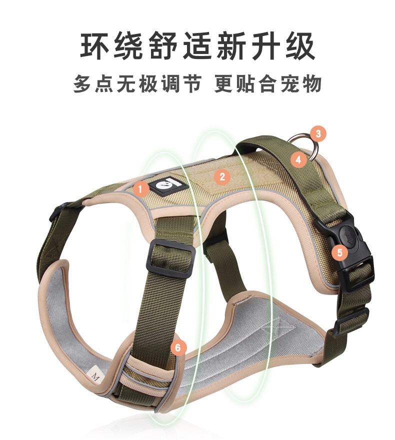 犬の牽引紐の防爆は、大きな犬の犬の紐の反射のペットの胸の帯のメーカーの卸売りをします。