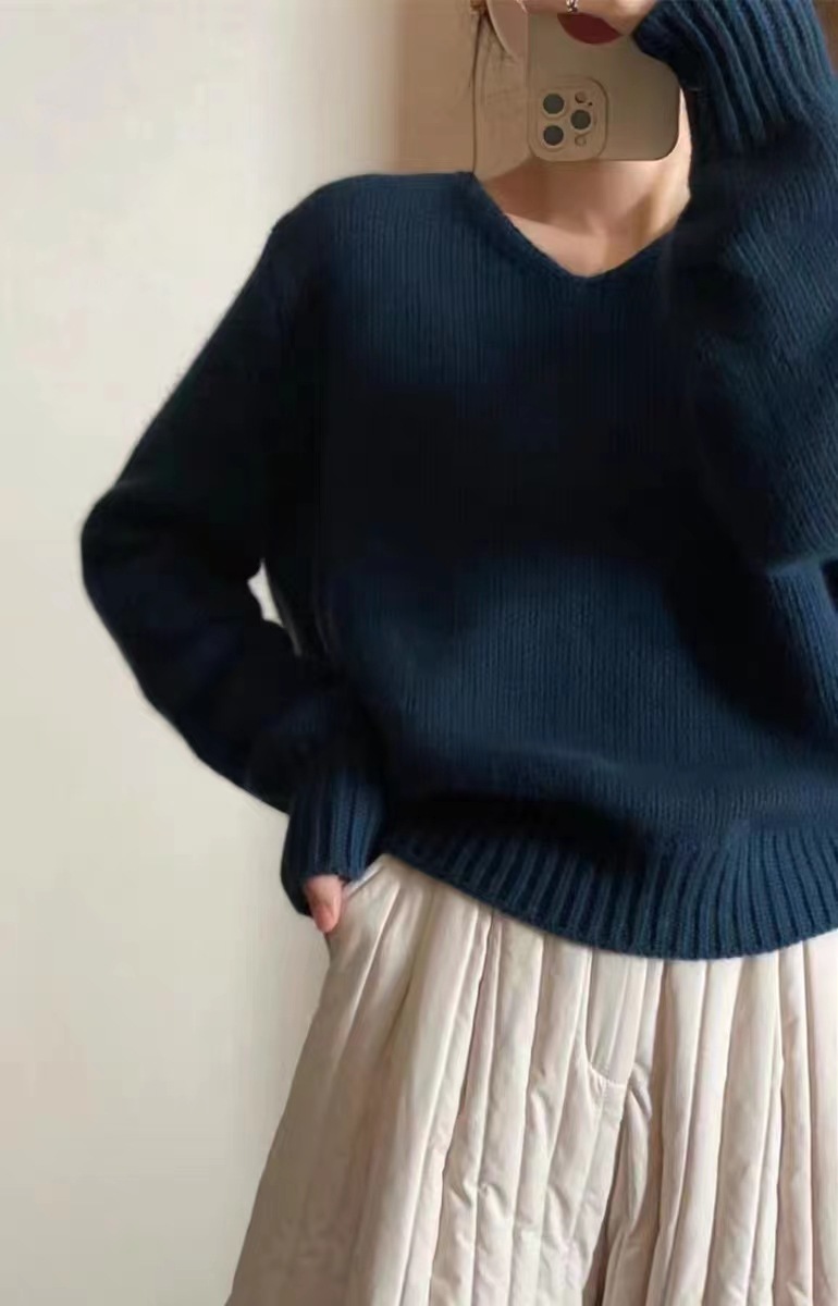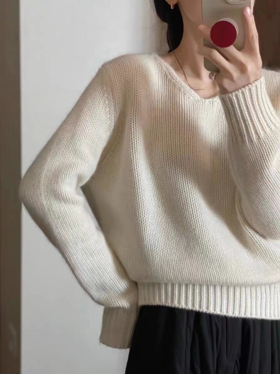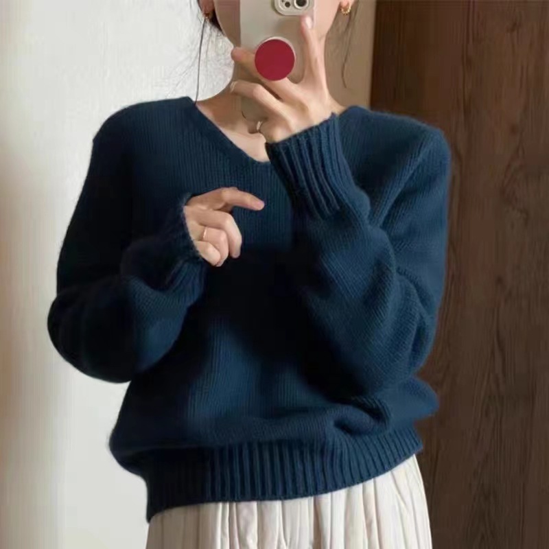 秋冬の新型vネックセーターの女性の短いタイプのゆったりとした厚手のセーター