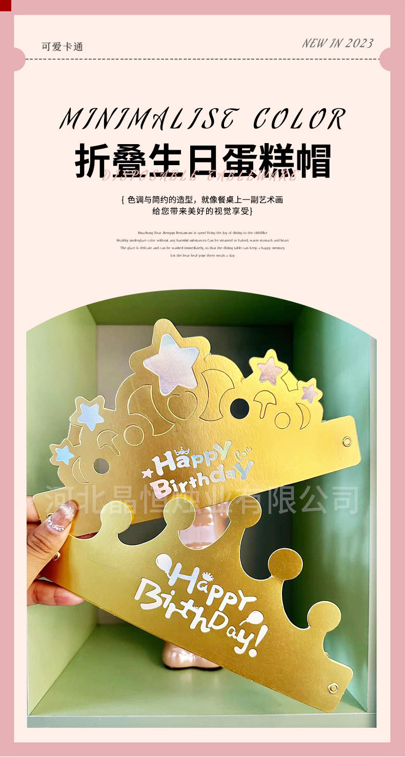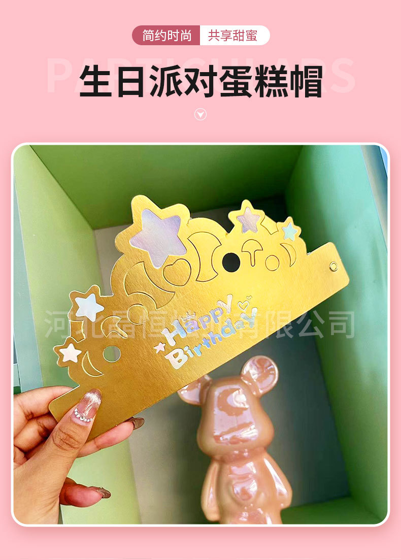 卸売折りたたみバースデーキャップ子供大人パーティー诞生日ケーキキャップゴールデンクラウン帽子ティアラ独立した包装