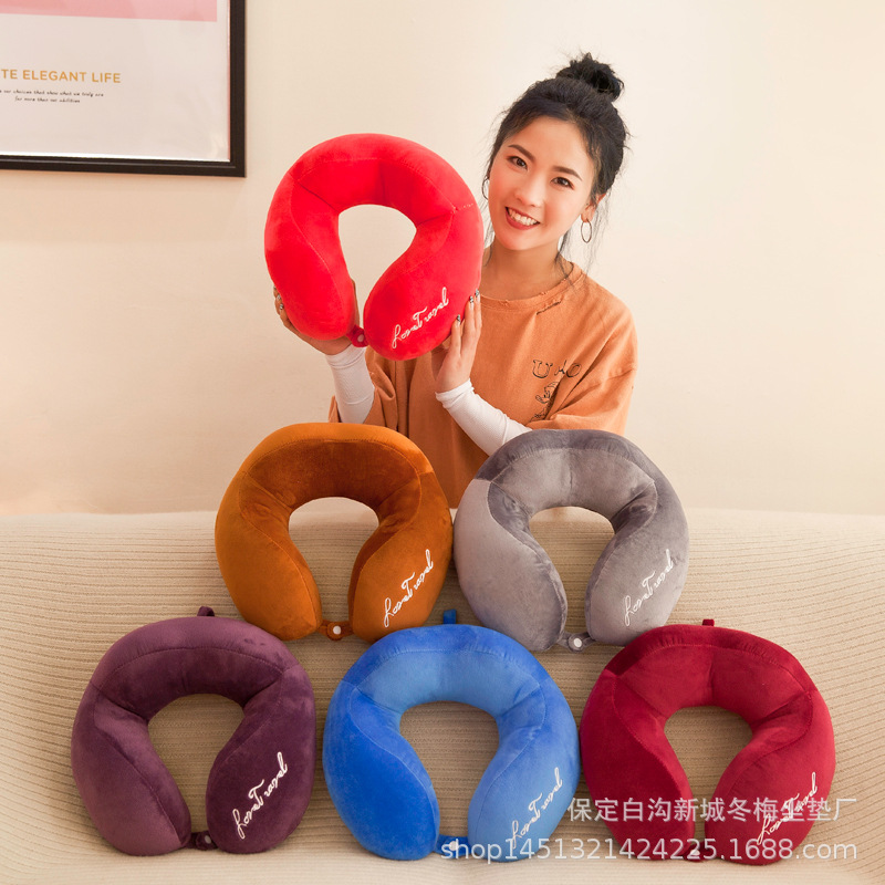 U型枕卸売りオフィス昼寝枕頚椎枕純色携帯旅行記憶綿保護首枕とロゴ