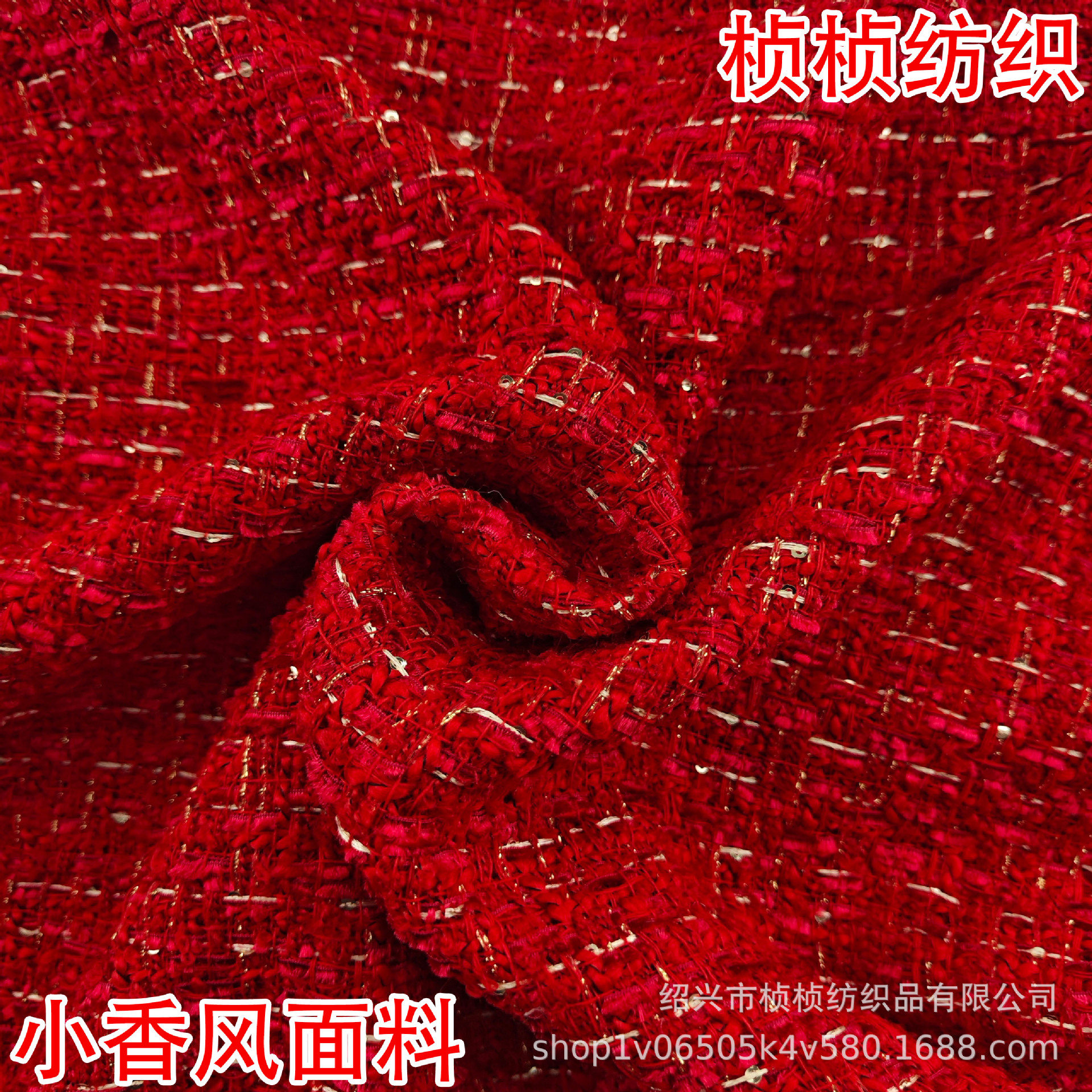 中国紅粗紡亮糸ビーズ布帛小香風生地編み色織ファッション婦人服コートコート靴材