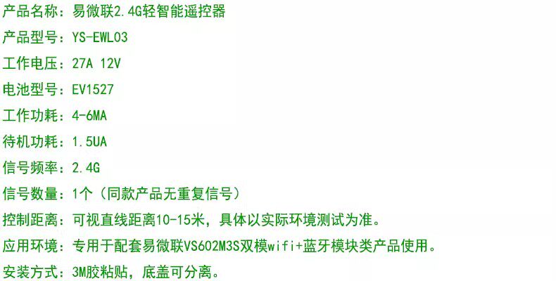 温馨提示:本遥控器专用于配套易微联双模智能开关通断器使用,如本店的WK1A-WK4A开关、WF1A-WF4A模块等双模版本;非本店的易微联双模模块设计的同类产品亦可使用。