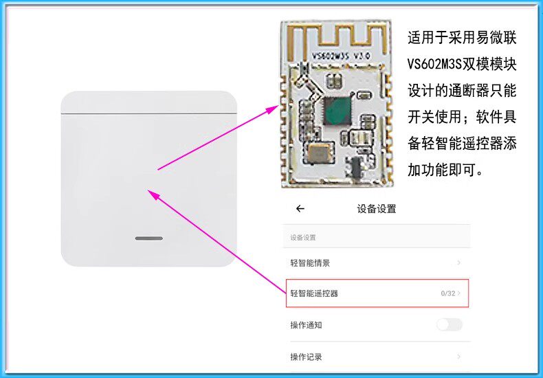 (注意:本遥控配套易微联双模通断器智能开关使用。)