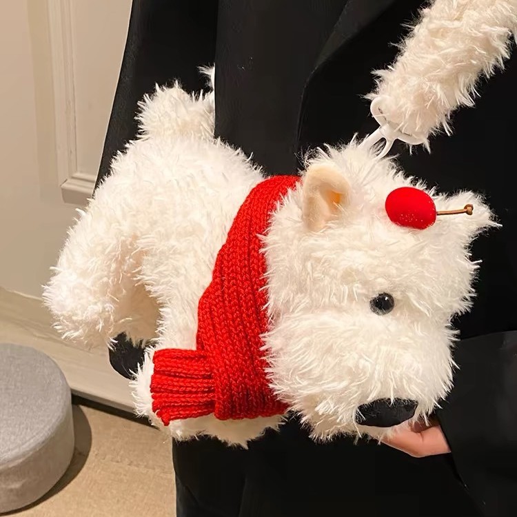 新年クリスマスレッドスカーフかわいいぬいぐるみバッグウエストハイランドクロスボディバッグウエストハイランドバッグ