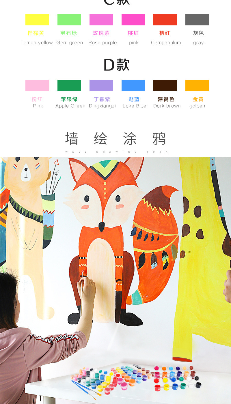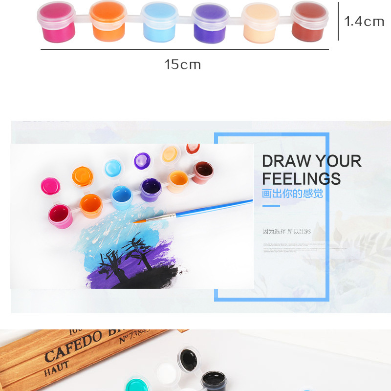 クロスボーダーアクリル塗料ストリップ石膏人形子供diy絵画落書き3ミリリットル12色6連体絵画顔料