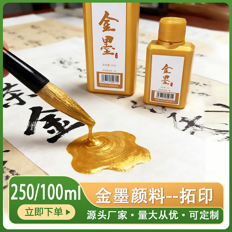 金色墨汁100ml毛笔学生写对联春联书法抄经专用黑墨快干金粉250ml