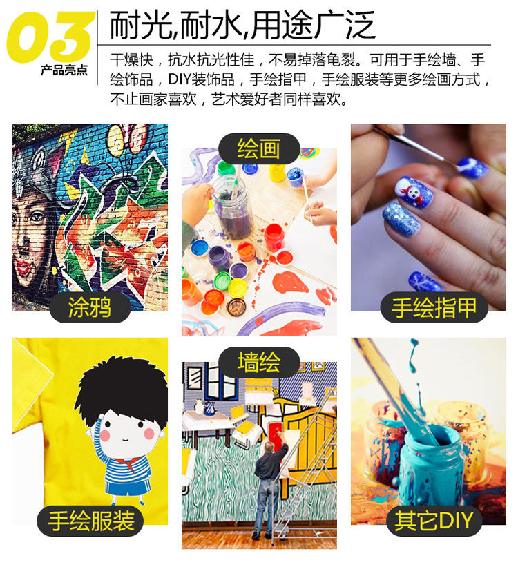 露店絵画水彩アクリル絵の具条3ml防水環境保護児童diy塗装石膏人形絵の具工場