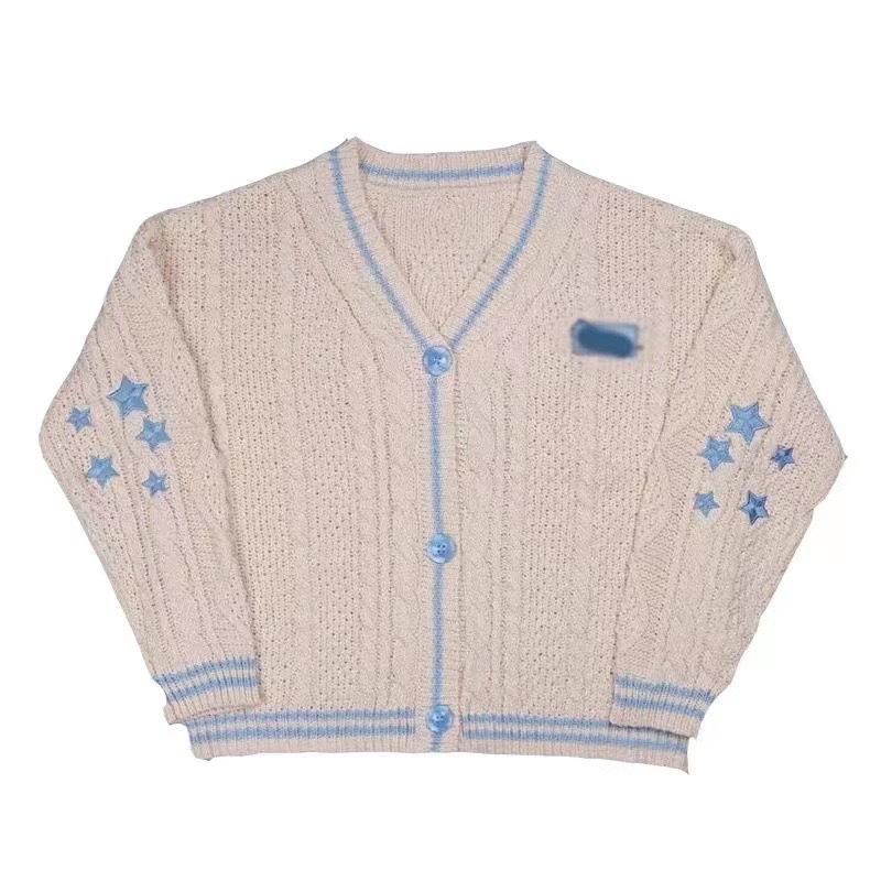 ゆるいカジュアルセーター国境を越えた欧米の女装秋冬百合vネック星刺繍ニットカーディガンコート女