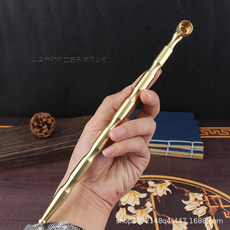 男性用のショートタイプの真鍮パイプは伝統的な旧式の純銅製のタバコ鍋に濾過芯を持っています。