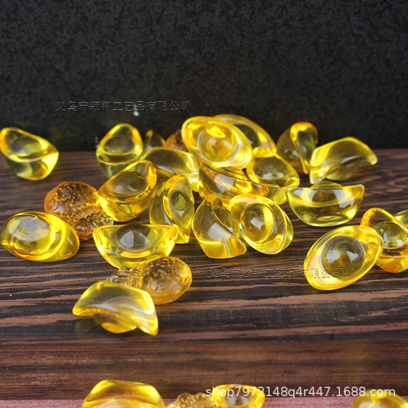 黄金色の瑠璃元宝の家の装飾品は黄色の水晶のガラスの福袋を飾って宝のたらいの伴侶の創意の装飾品を集めます。