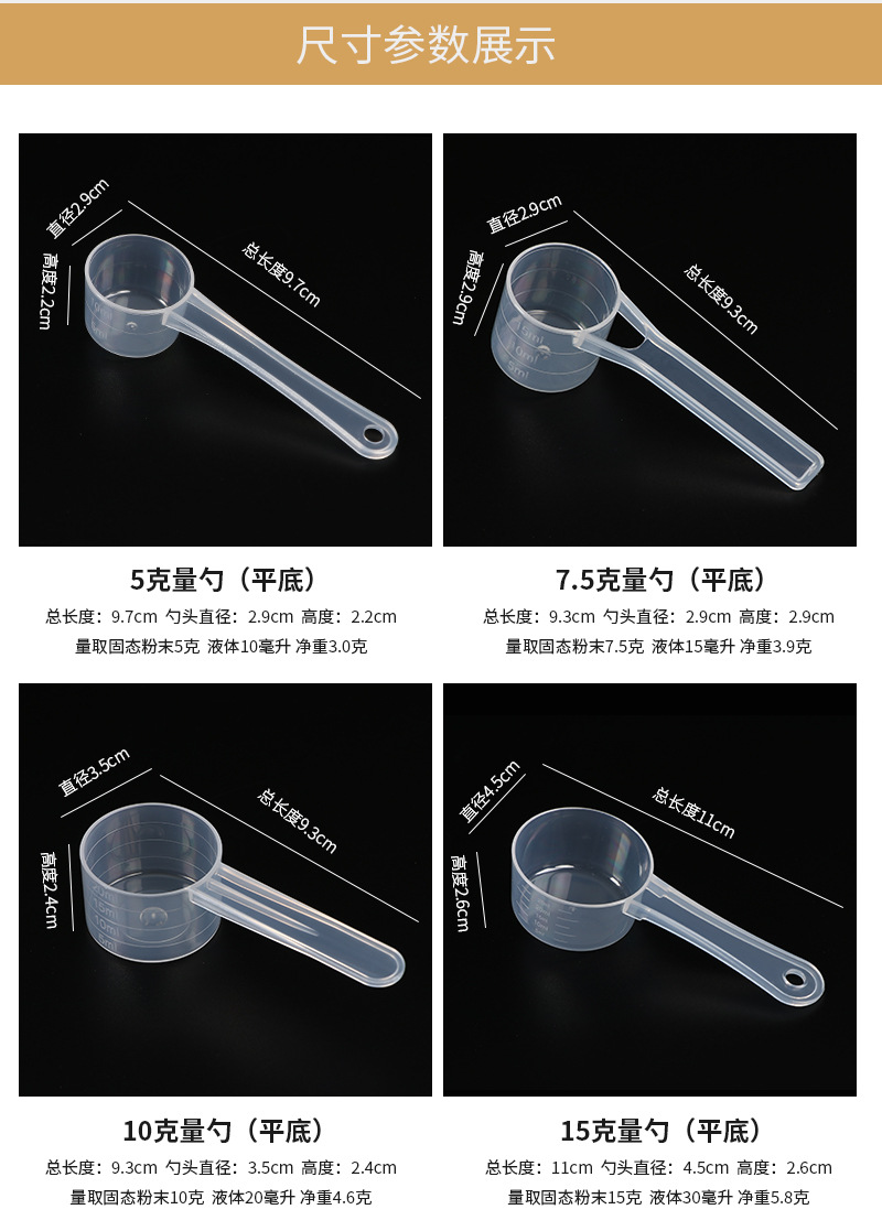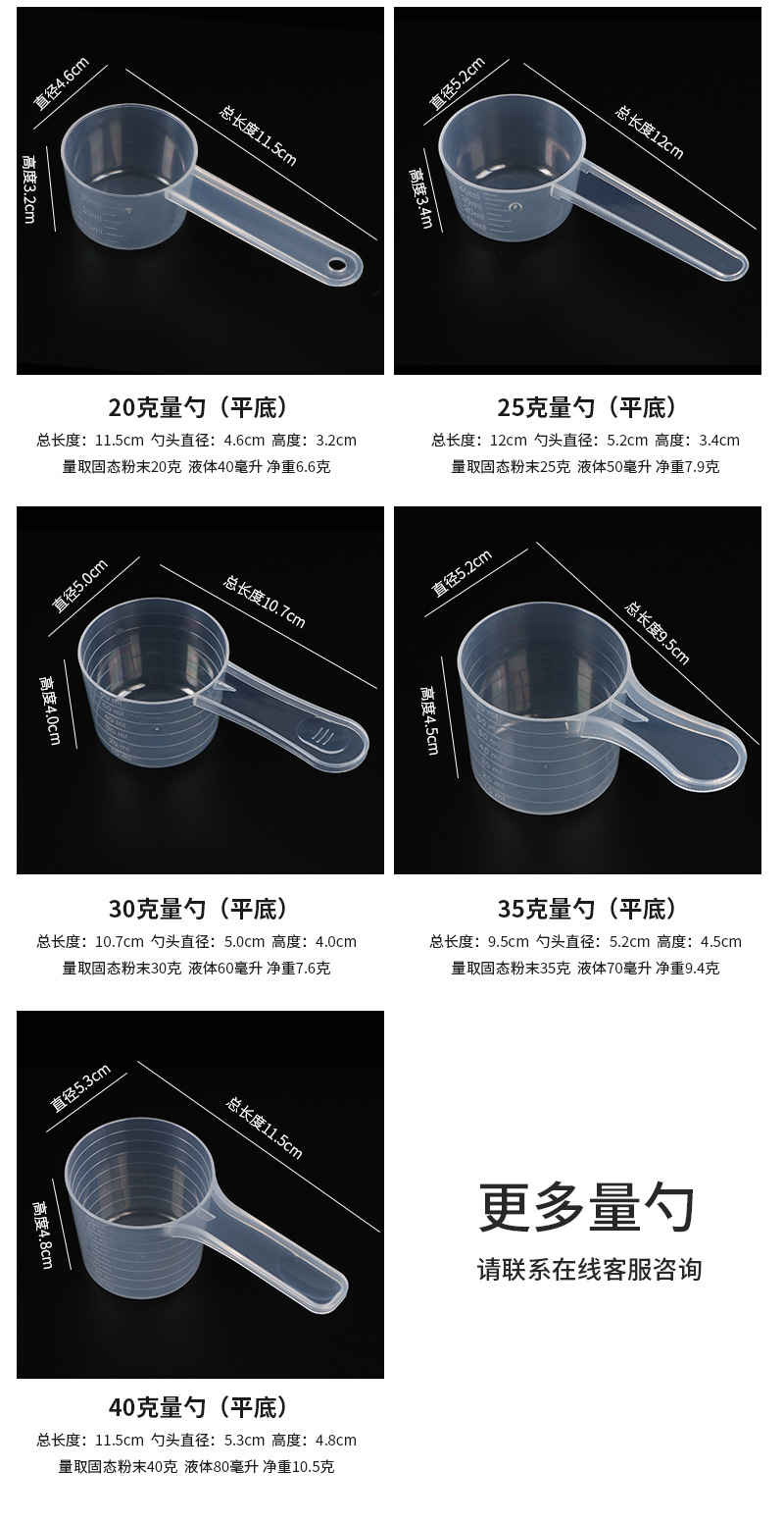 食品級pp新型材料固体両用プラスチックスプーンタンパク質粉高透明スケールスプーンプラスチック計量スプーン直供