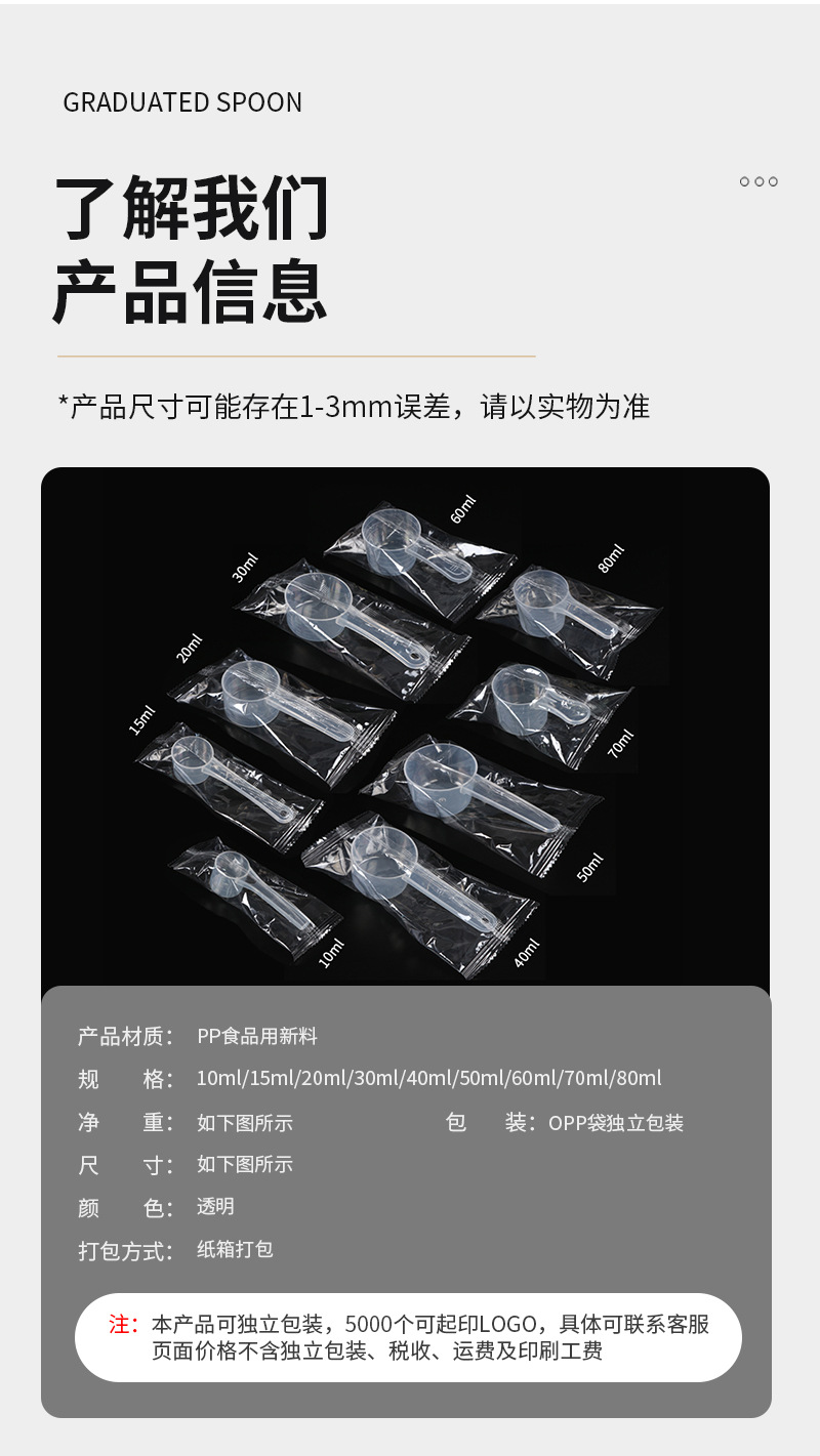 食品グレードppオール新素材固体液体両用プラスチックスプーン白スケールスプーンプラスチック計量スプーン独立包装