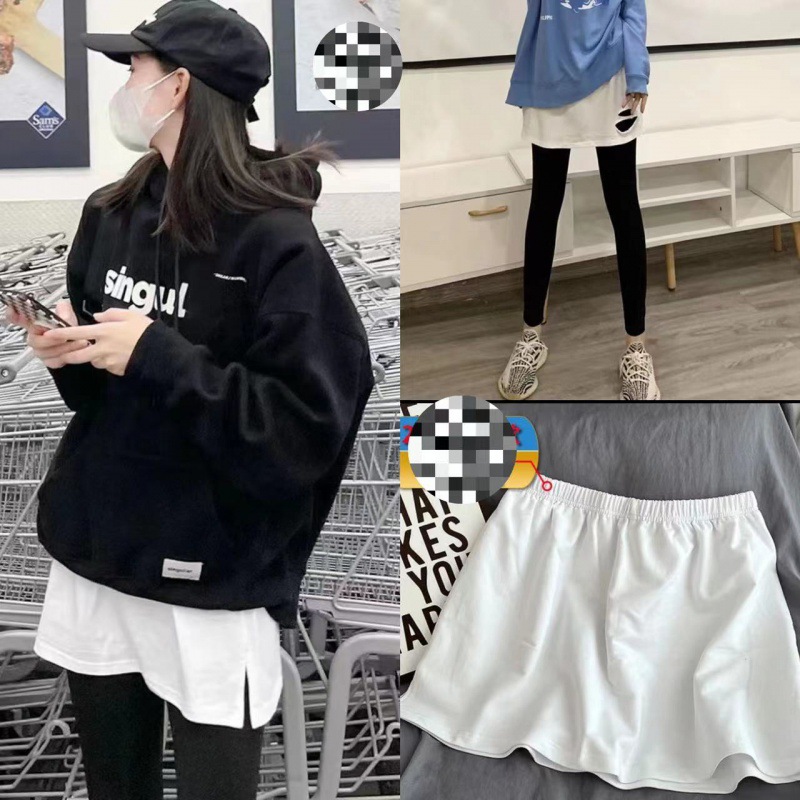 纯棉屁帘下摆卫衣打底神器女半身裙遮臀大码内搭叠穿假两件秋冬