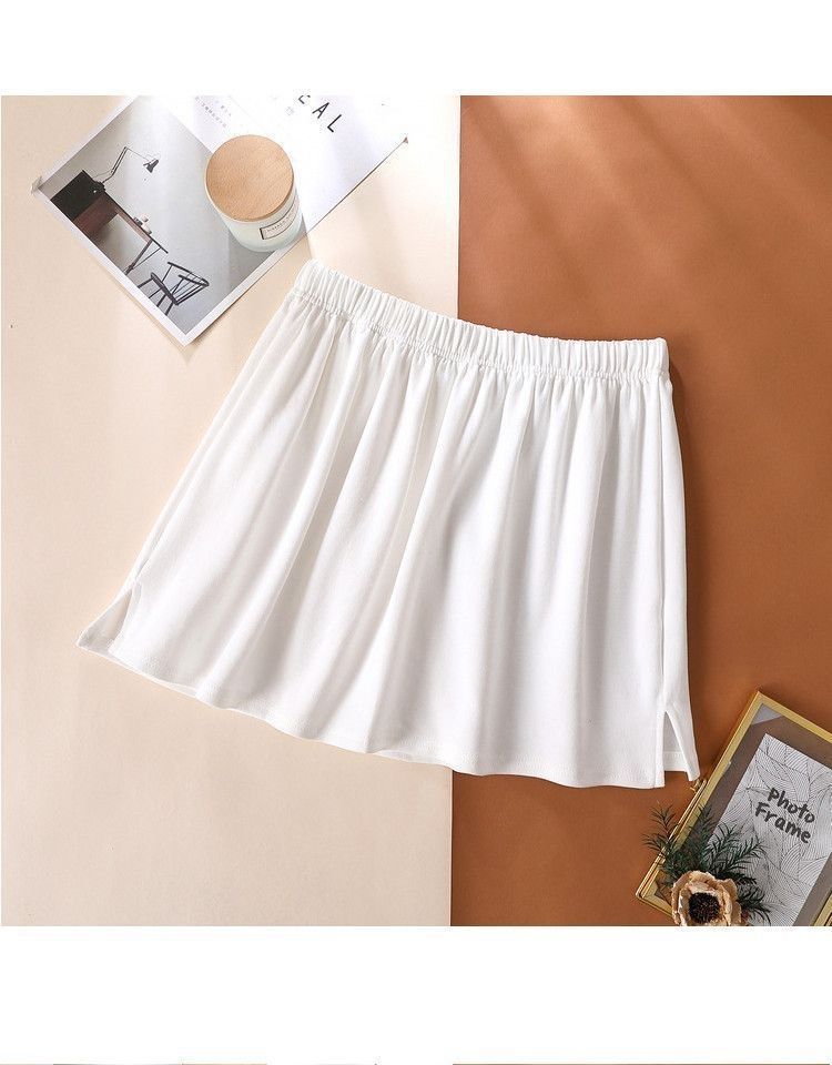 純綿防走光衛衣は短いスカートを重ねて着ています。