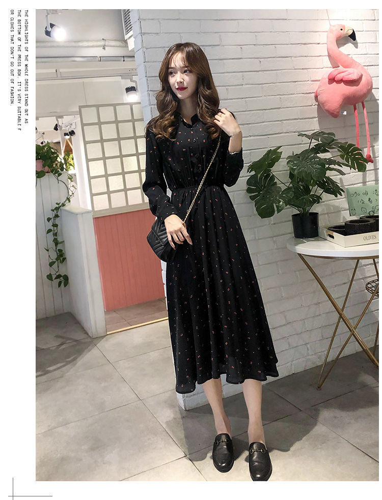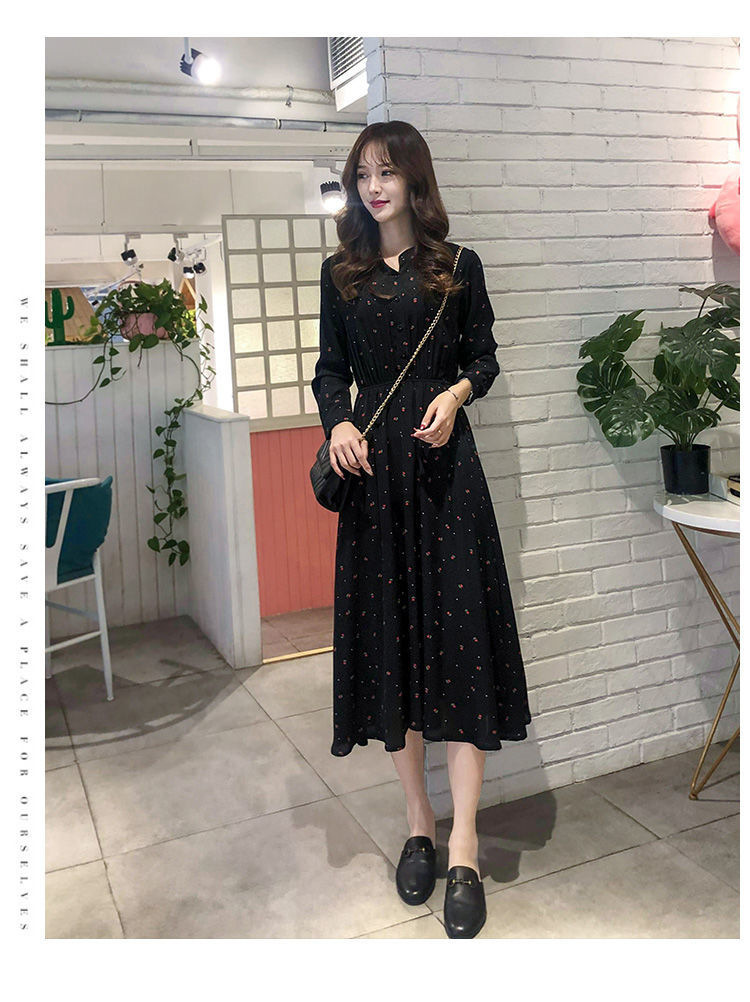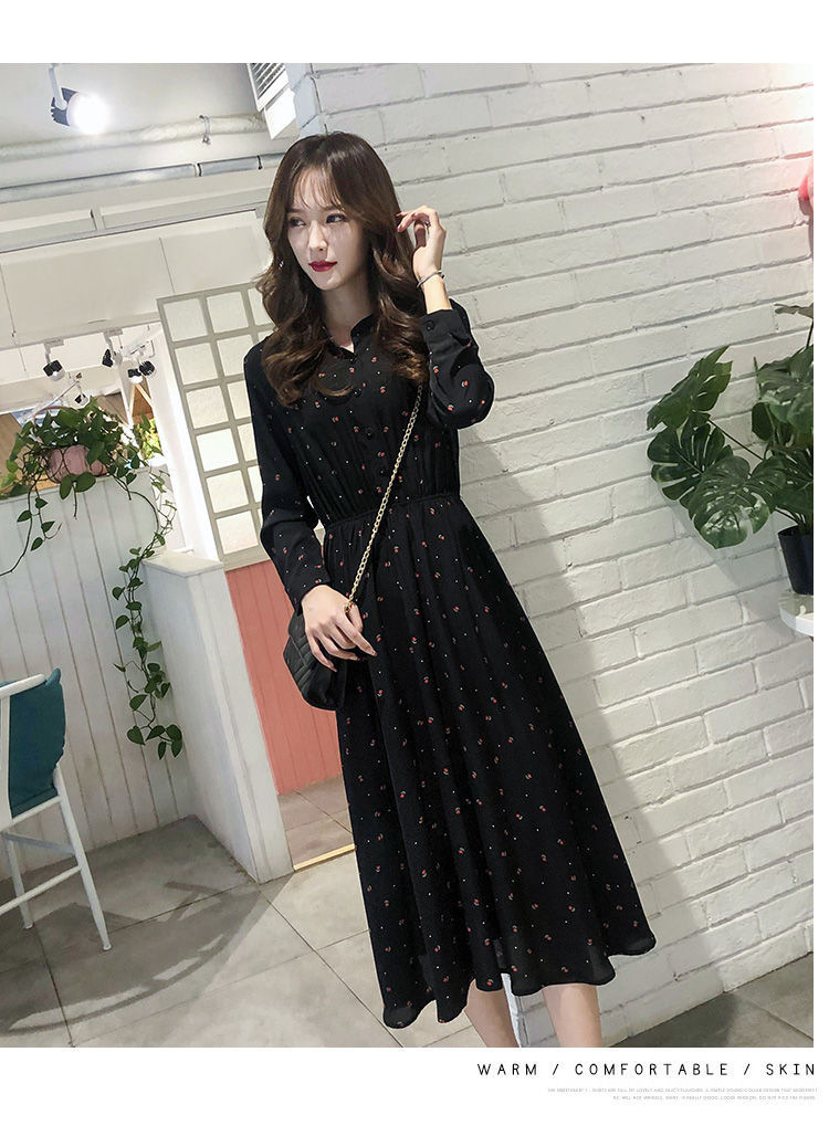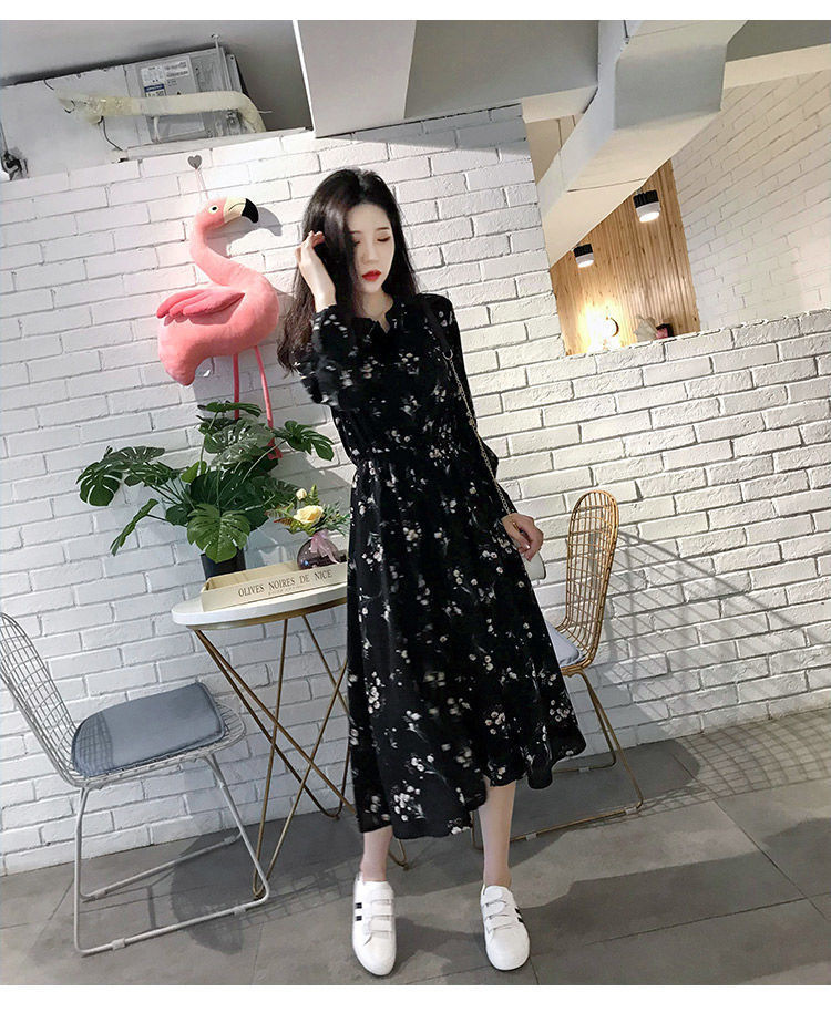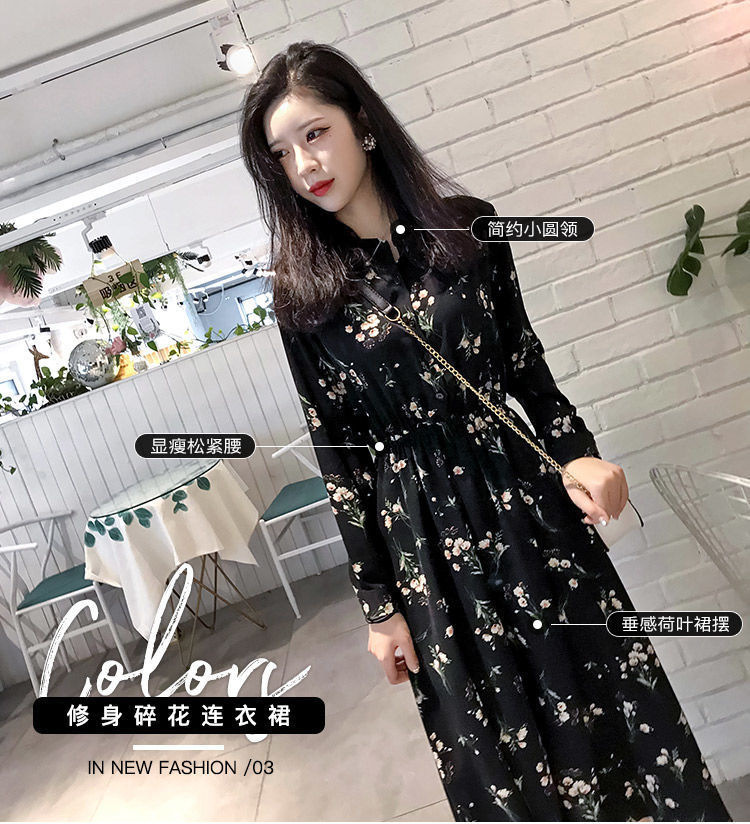 シフォンワンピース レディース 2025春秋新作 レディースウェア スリムフィット 膝丈シャツワンピース 花柄ロングワンピース トレンド