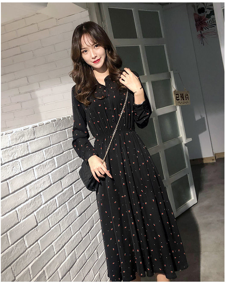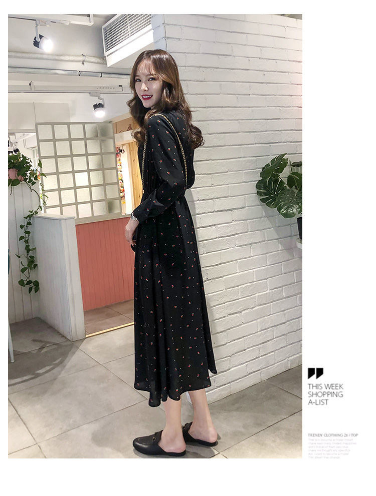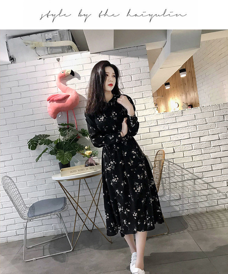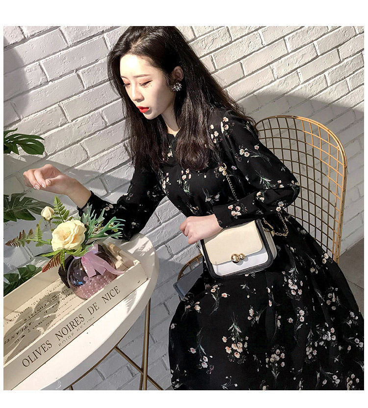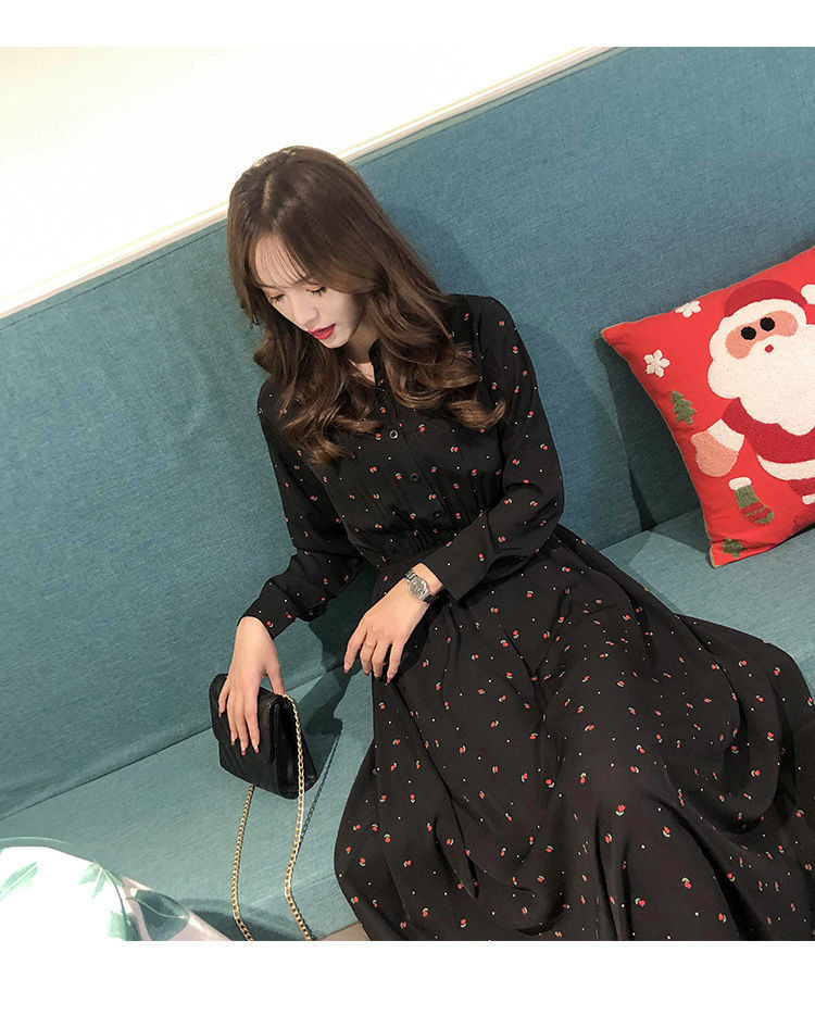 シフォンワンピース レディース 2025春秋新作 レディースウェア スリムフィット 膝丈シャツワンピース 花柄ロングワンピース トレンド