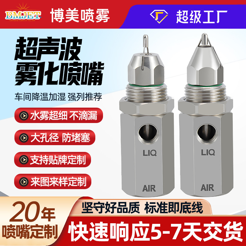 カスタマイズされたステンレス鋼超音波霧化ノズル、工場加湿冷却用ドライミストノズル、炭鉱防塵ノズル