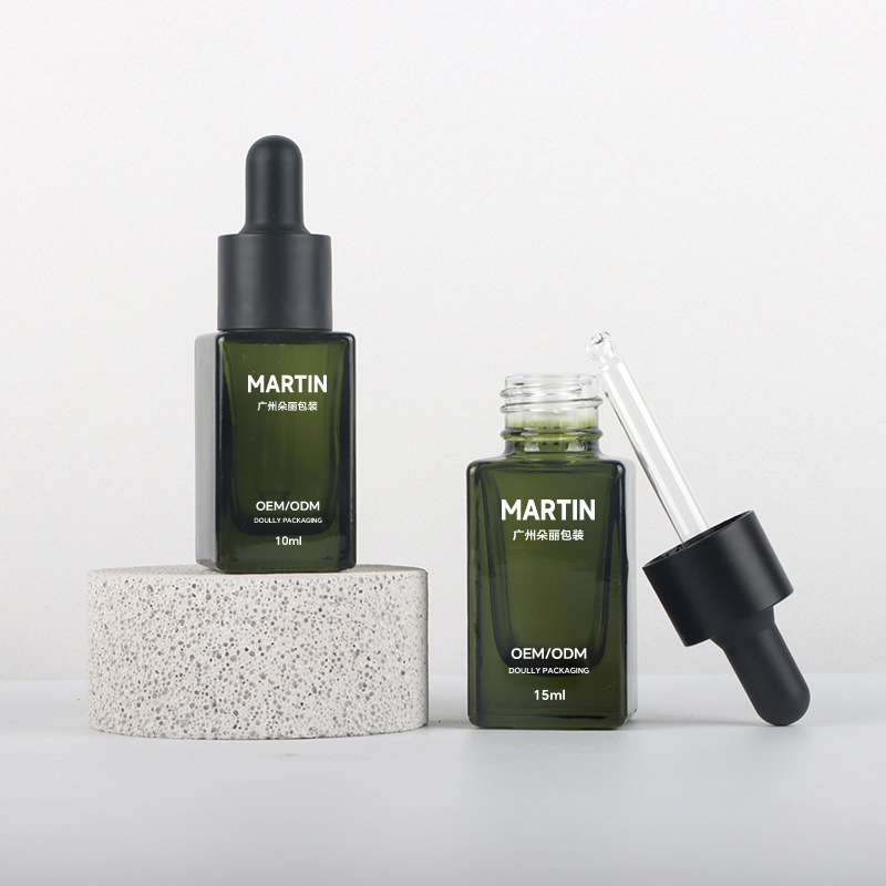 在庫あり卸売10ml30mlエッセンスボトル精油ボトル正方形ガラス製緑色ドロッパーボトル詰め替えボトルカスタマイズ可能