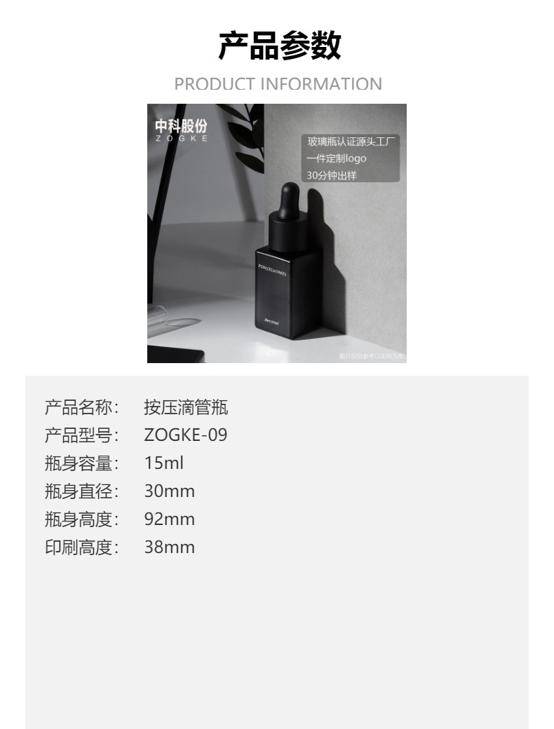 規格型番 10ml;ガラス;つや消しブラックリングとマットブラックプラスチックヘッドを備えたブラックフロストスクエアボトル,15ml;ガラス;つや消しブラックリングとつや消しブラックプラスチックヘッドを備えたブラックフロストスクエアボトル